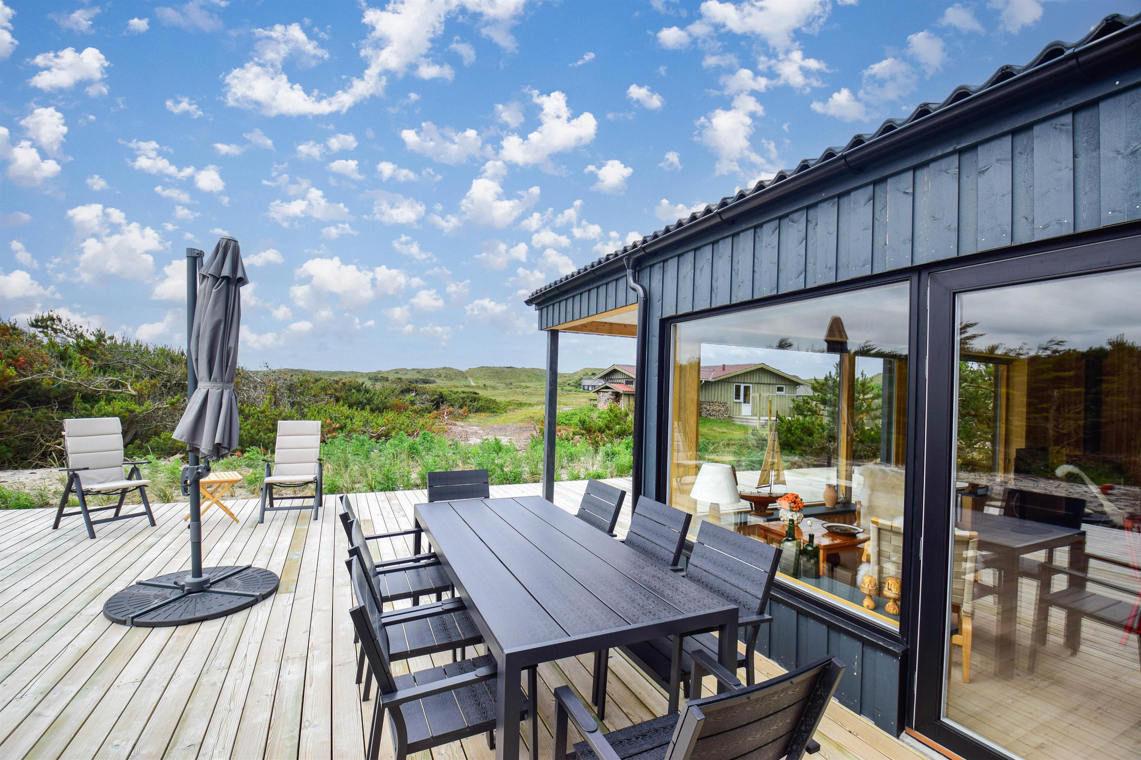 Her får I store terrasser, udebruser og masser af plads til afslapning både ude og inde – et oplagt valg for naturelskere og familier, der vil nyde ferien i Fjand.
