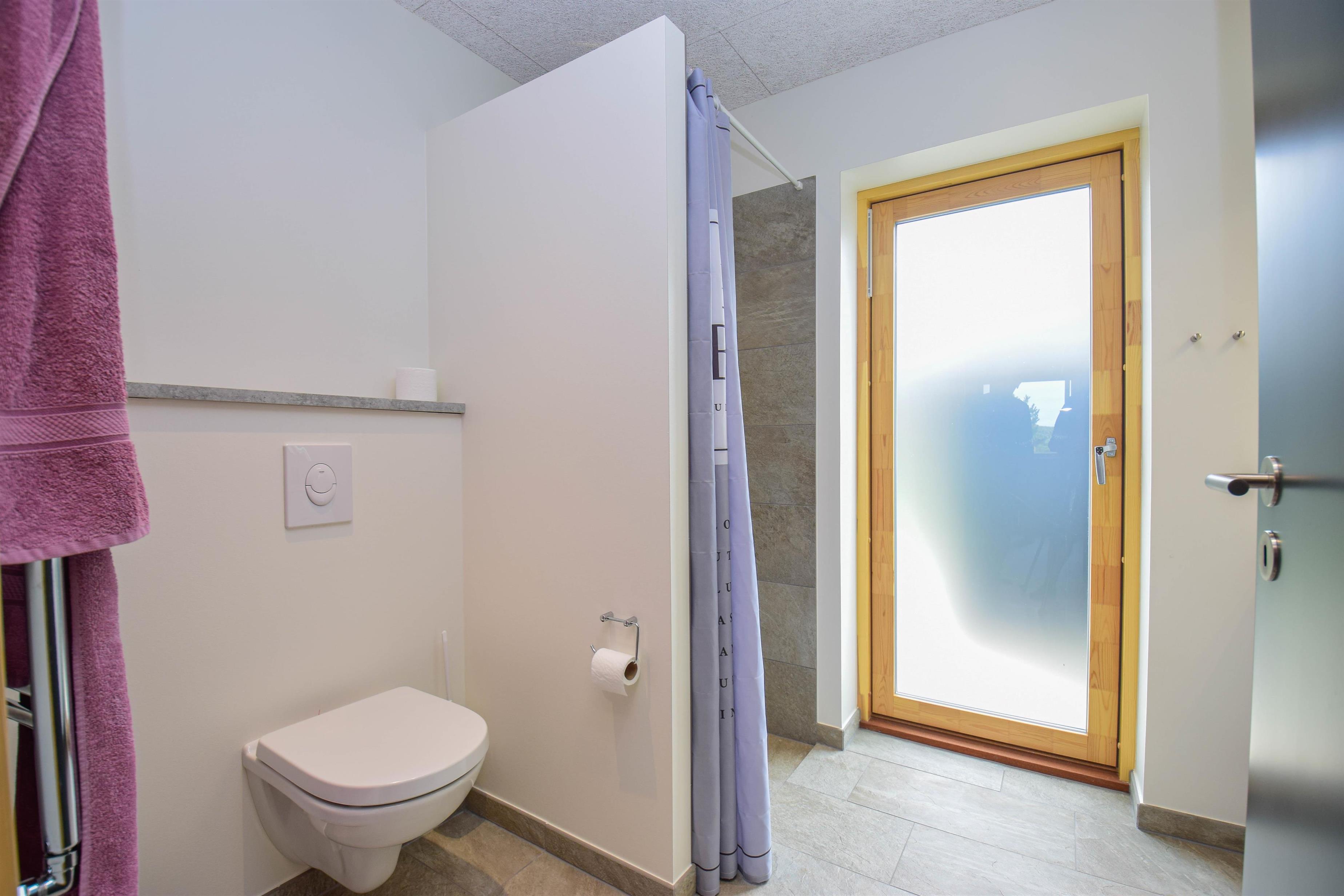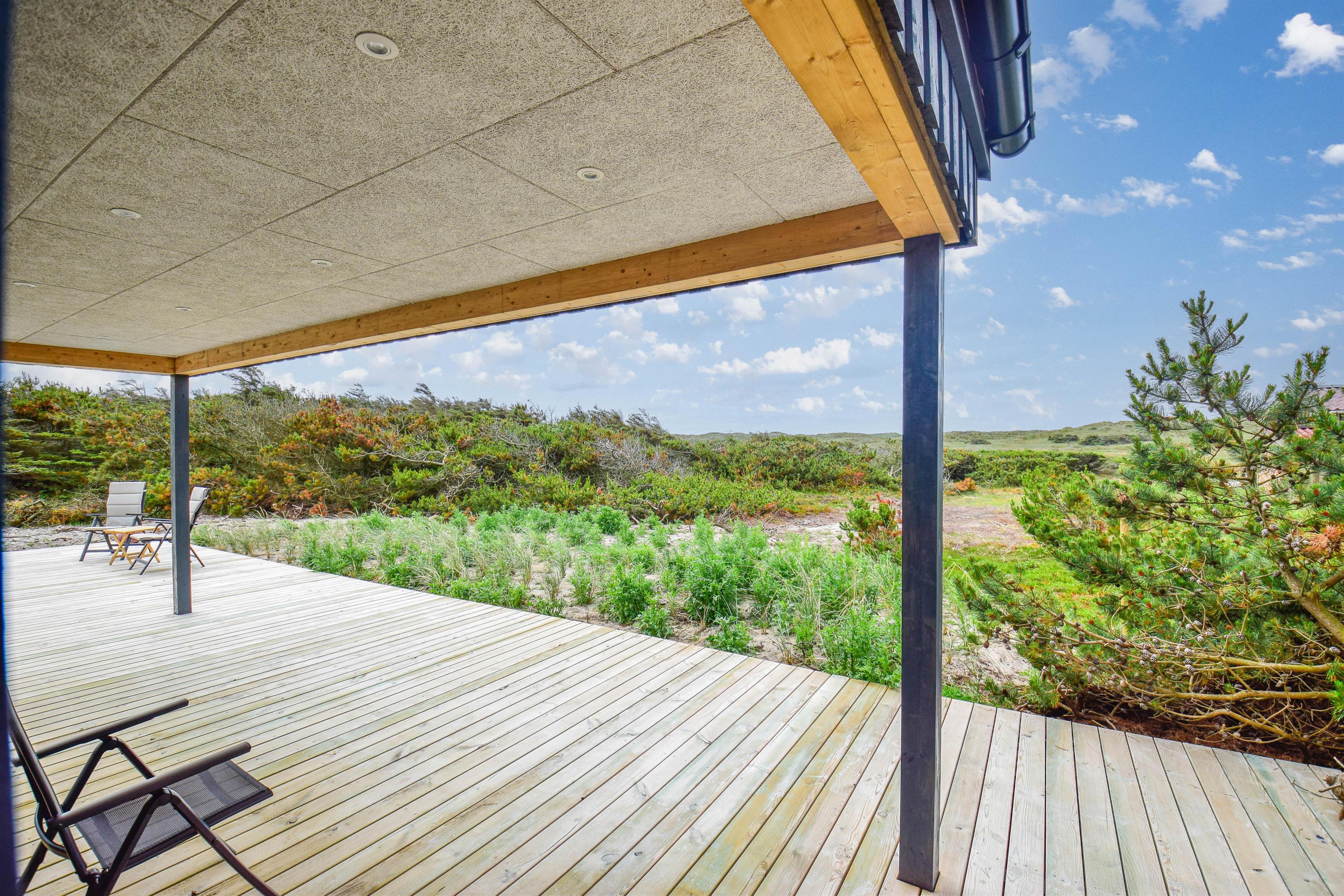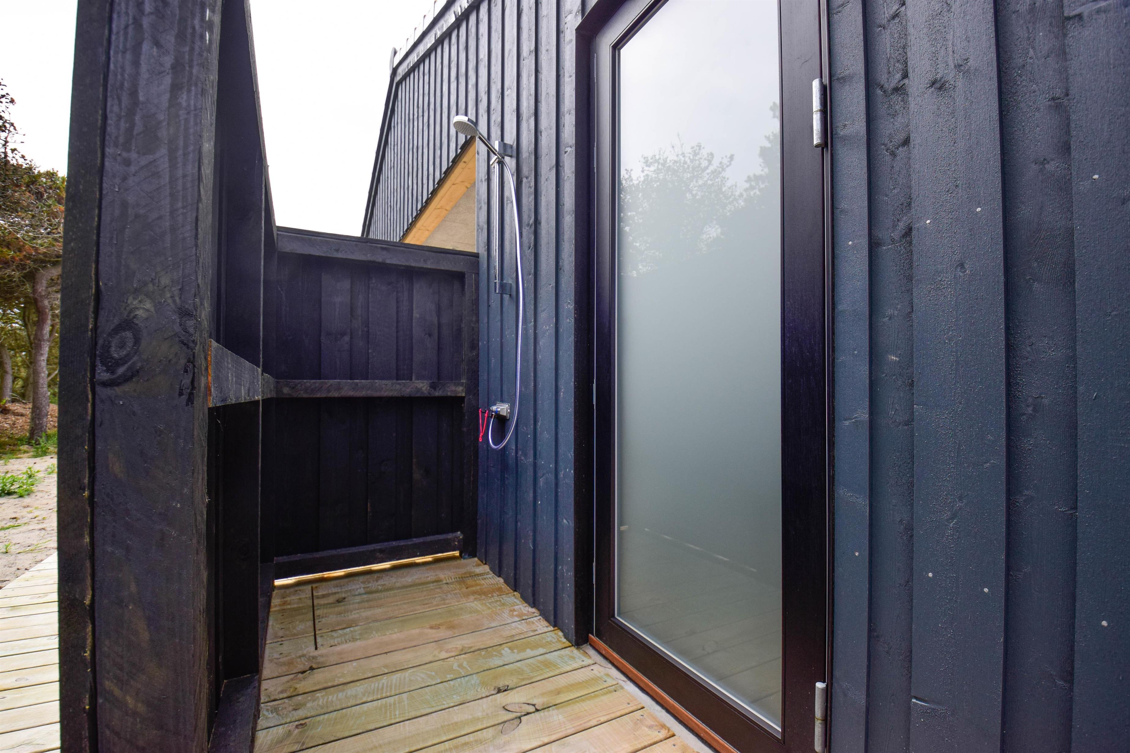 Den vestvendte terrasse er delvist overdækket, så I kan nyde udelivet i al slags vejr – og efter en tur på stranden er det skønt at skylle sandet af under den udendørs bruser med både koldt og varmt vand.