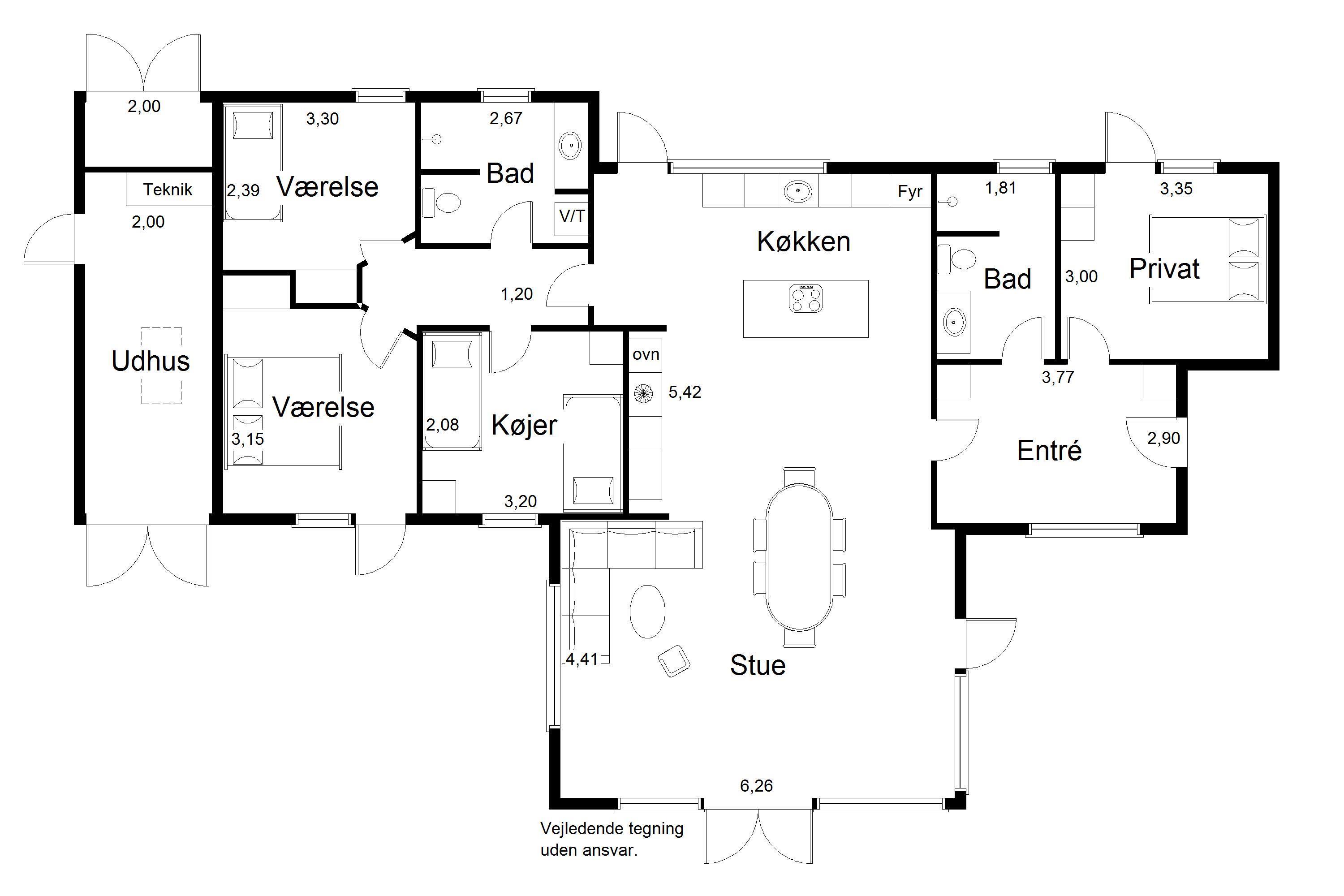 Et lyst, rummeligt og velindrettet feriehus i rolige omgivelser – tæt på strand, klitplantage og fjord.