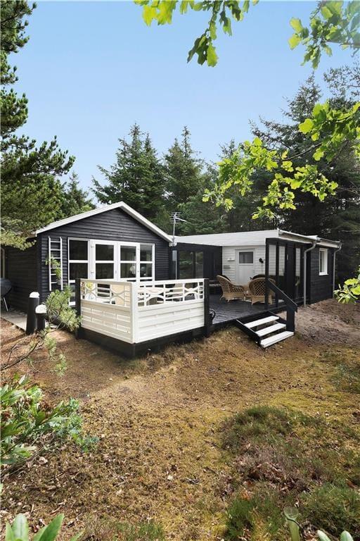 Drømmer I om en hyggelig ferie tæt på naturen? Så er dette charmerende træferiehus noget for jer! Perfekt til 2 voksne og 2 børn, og renoveret i 2018, fremstår huset lyst, indbydende og i ægte sommerhusstil. Her får I et flot, veludstyret køkken i åben forbindelse med stuen – det oplagte samlingspunkt for hyggelige måltider og afslapning. Fra stuen har I udsigt til den fredelige naturgrund og direkte adgang til en skøn træterrasse, hvor I kan nyde solen og roen dagen lang. Huset rummer et dejligt badeværelse med bruser samt to soveområder – ét med køjeseng til børnene inde i huset og ét med to enkeltsenge i det hyggelige anneks. Her er rammerne sat for en afslappet ferie med masser af nærvær, natur og feriestemning.