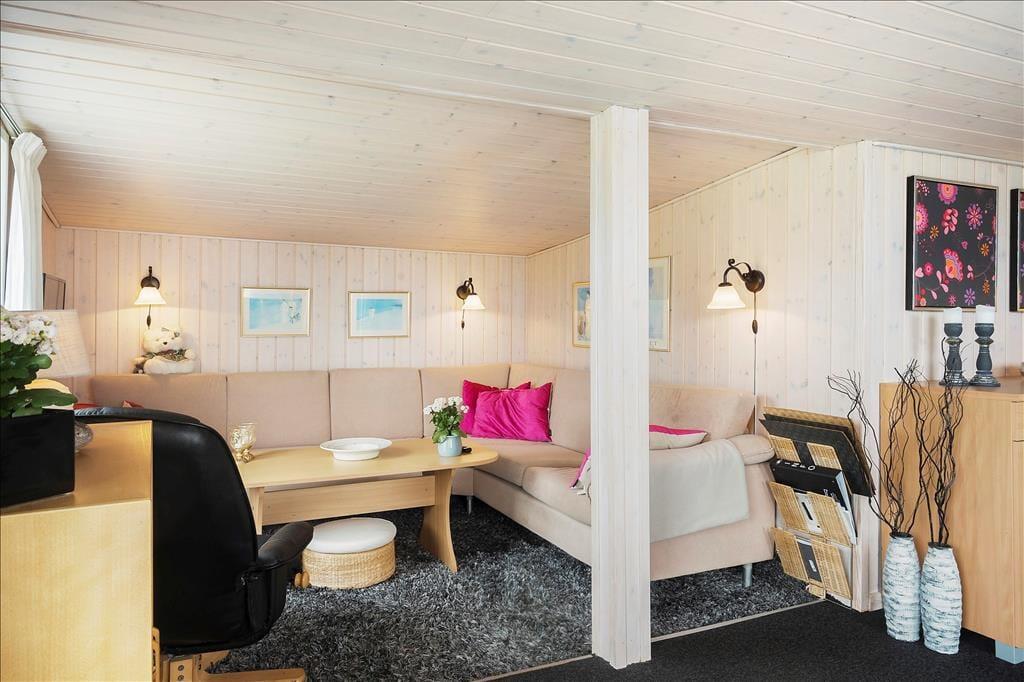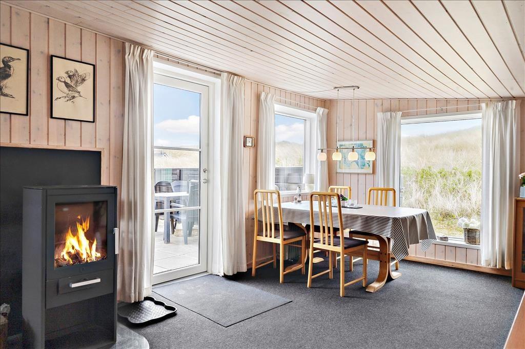 Drømmer I om en ferie tæt på hav, klitter og frisk havluft, så vil dette hyggelige træhus uden tvivl falde i jeres smag. Her bor I kun 100 meter fra det brusende Vesterhav – midt i den vestjyske natur, hvor roen sænker sig, og dagene går med nærvær og afslapning. Indenfor mødes I af en lys og venlig atmosfære med store vinduer og et skønt lysindfald, der får naturen helt ind i stuen. Her kan I synke ned i sofaen og nyde udsigten til klitterne, mens brændeovnen knitrer og spreder varme på kølige dage. Køkkenet er åbent og funktionelt, så I kan være sammen, mens dagens måltider bliver tilberedt, og de to lyse soveværelser byder på ro og komfort efter en dag fyldt med strandture og frisk luft. Badefaciliteterne er praktisk opdelt med separat toilet og brusekabine – en lille, men funktionel detalje, der gør ferien ekstra behagelig.