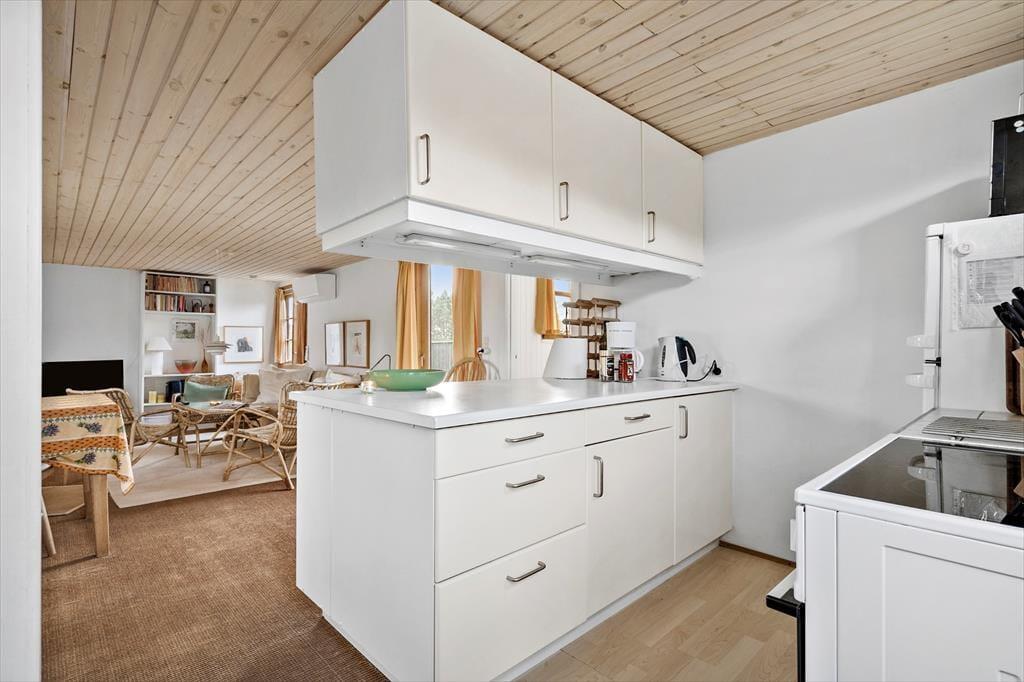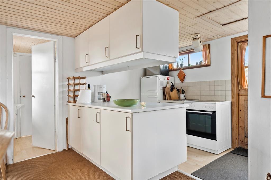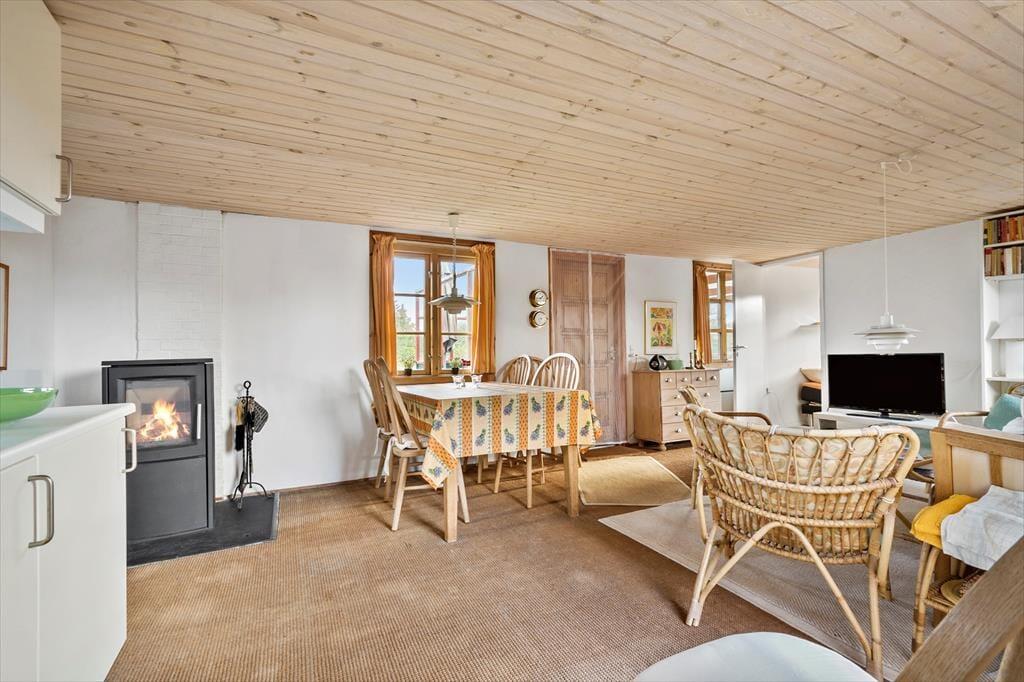 Dette yderst charmerende feriehus ligger op til total afslapning og frakobling fra hverdagens trummerum. Med sine mange hyggelige detaljer, kan man ikke andet end at tage en dybindånding og lade feriefreden sænke sig over en. Det dejlige køkken som ligger i åbenforbindelse til både opholdsstue og spisestue giver jer god mulighed for at nyde hinandens selskab. Tænd op i den hyggelige brændeovn og nyd dens beroligende knitrende lyd der spreder sig sammen med dens behagelige varme, sæt dig godt til rette med en god bog eller det nyeste strikkeprojekt.