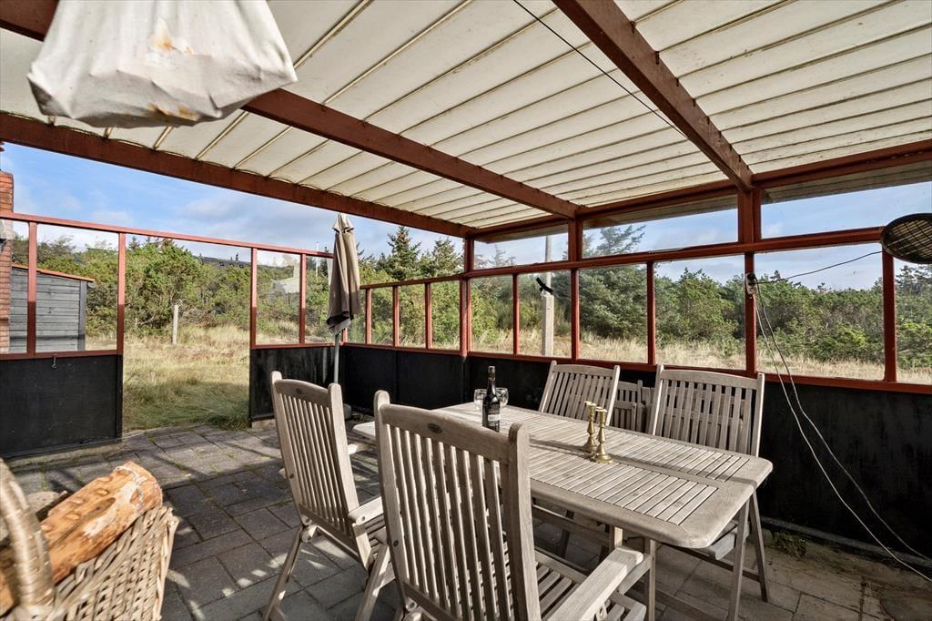 Dette skønne feriehus ligger uspoleret midt i den vilde vestjyske natur, og i den skønne have kan I nyde naturen fra alle dens sider. Tag morgenkaffe med ud på den østvendte terrasse og nyd den alt imens I ser hvordan solen langsomt titter frem og skaber et hav af orangerøde nuancer på himlen. Når aftensmaden skal nyde, kan I tage den med ud på den vestvendte terrasse og se hvordan solen går ned, lige præcis som I så solen gå op.