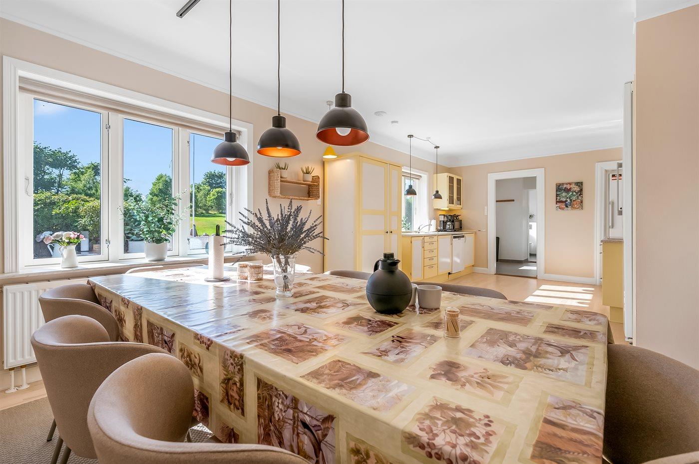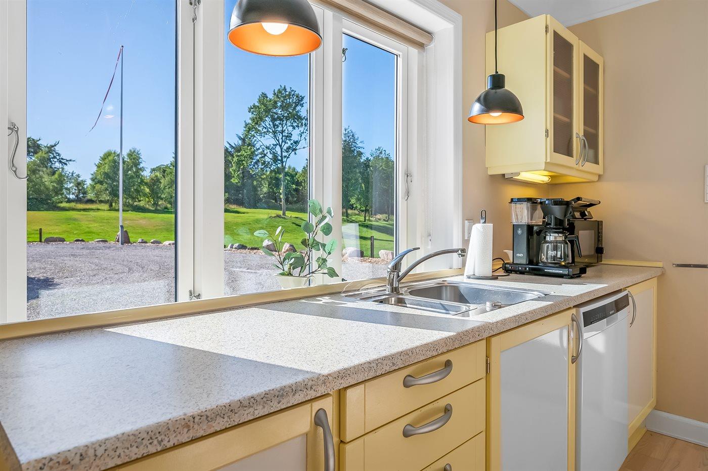 Køkkenet er udstyret med 1 køleskab. Der er 4 induktionskogeplader, varmluftovn, mikrobølgeovn samt opvaskemaskine.