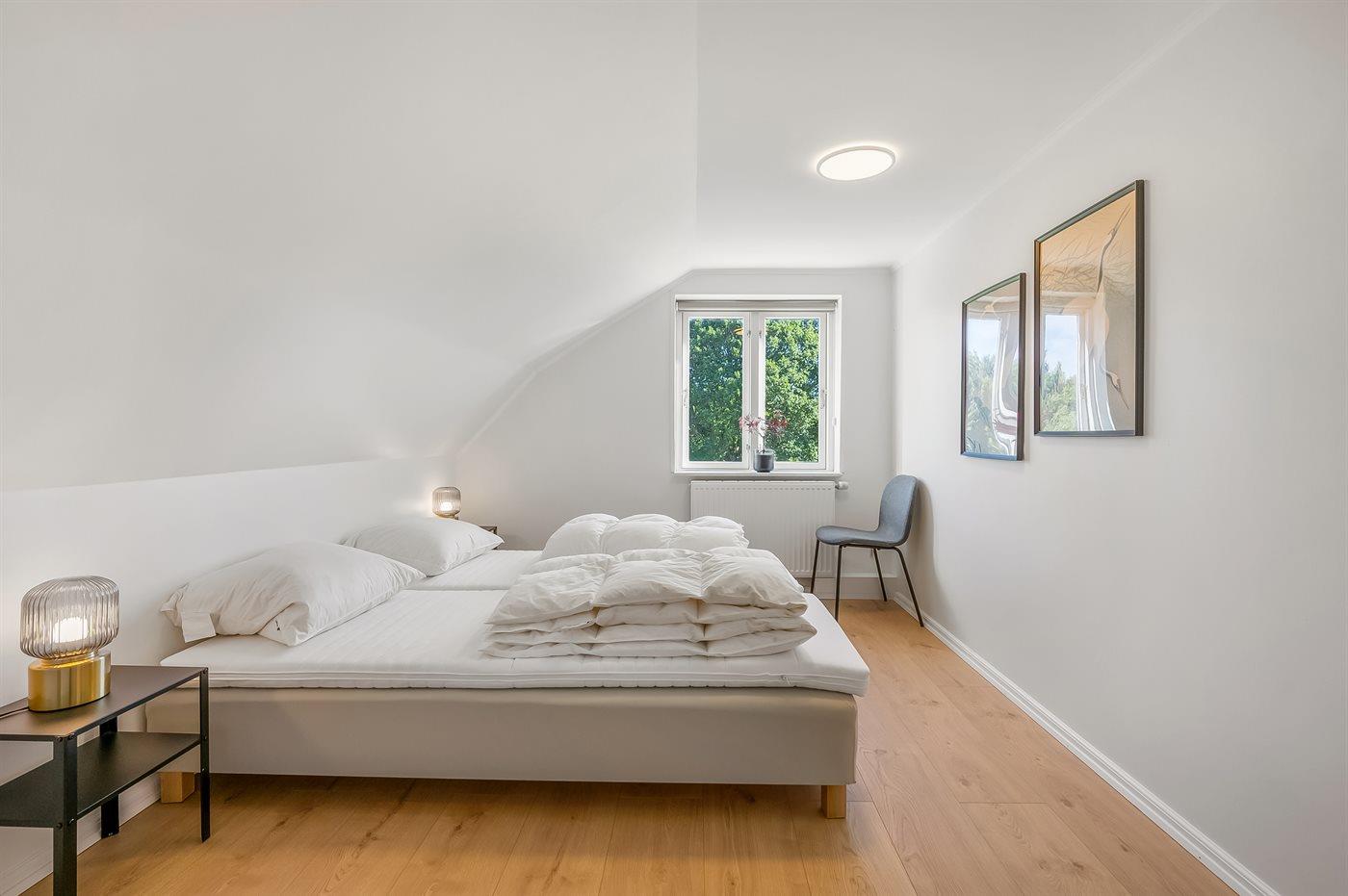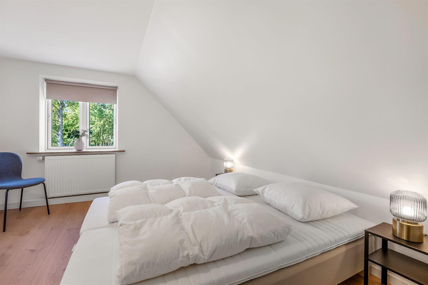 Der er i alt 6 soveværelser. Sovepladserne fordeler sig på: 8 sovepladser i dobbeltsenge. 4 sovepladser i enkeltsenge. Derudover er der 1 stk. barneseng.