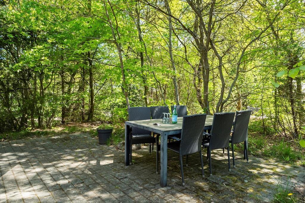 Udenfor fortsætter ferieglæden i de skønneste omgivelser. Sommerhuset ligger på en skøn grund omgivet af dejlige træer, der giver både læ, ro og en hyggelig stemning. Her er masser af plads til at nyde livet under åben himmel – hvad enten det er med en god bog i solen eller en bold i spil.