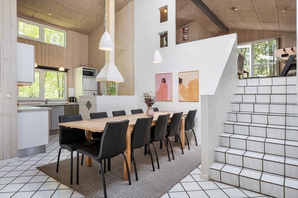 Hjertet i huset er det store, lyse køkken/alrum, hvor madlavning bliver en dejlig del af ferien og ikke bare en pligt. Her kan I snitte grønt og vende dagens oplevelser over et godt glas, mens nogen dækker op til fællesmiddag og andre planlægger aftenens spil. Ferietempoet sætter ind helt af sig selv.