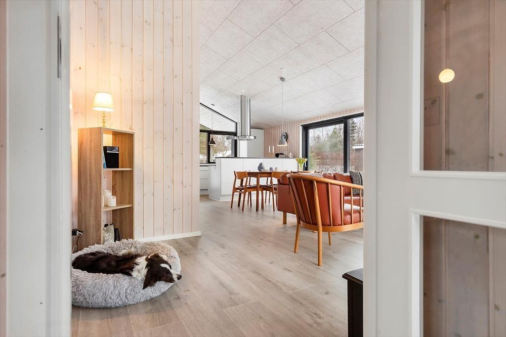 Træd ind i entreen og mærk straks det dejlige lys og den ægte feriestemning fra første sekund. Dette lækre sommerhus på 98 kvm er opført i 2021 og kombinerer solid kvalitet med moderne komfort – et sted, hvor skuldrene automatisk sænker sig, og ferien starter allerede, inden I har sat kufferterne fra jer.