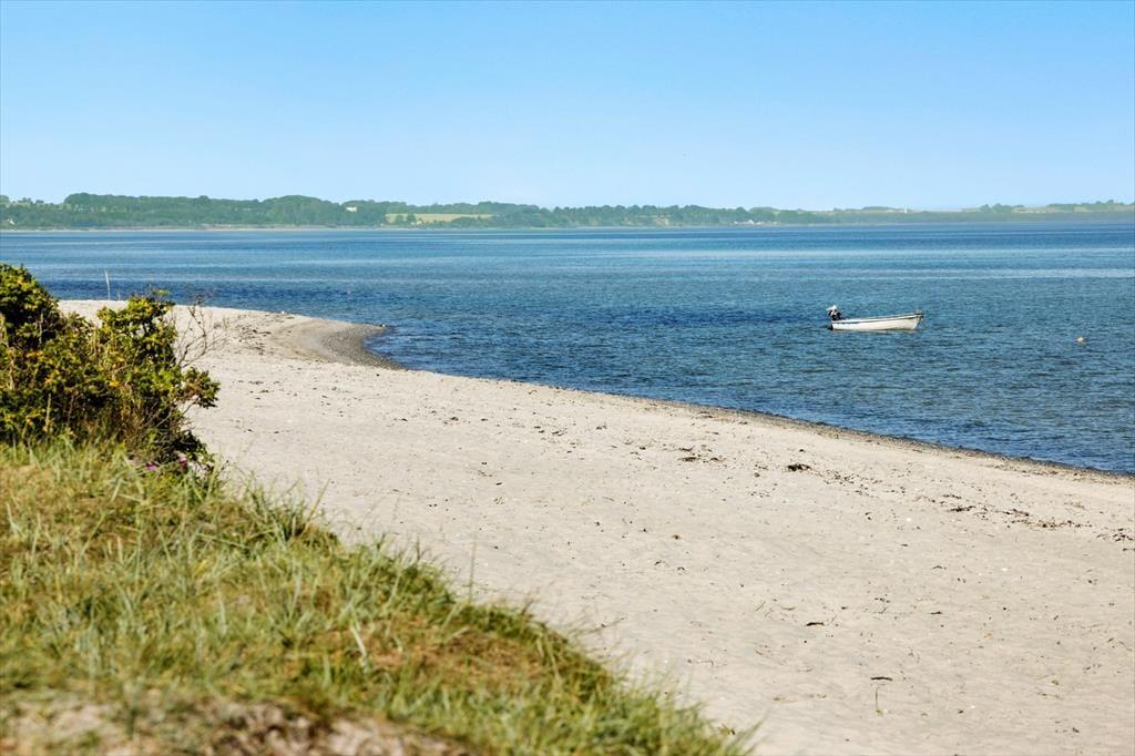 Sommerhuset ligger kun 450 meter fra badestranden, så det er nemt at tage på ture til vandet, uanset om det er til en kort dukkert, en gåtur langs kysten eller en hel dasedag på stranden. Grunden omkring huset er indhegnet og har en plan græsplæne, hvor både børn og hunde kan boltre sig, lege og tumle.