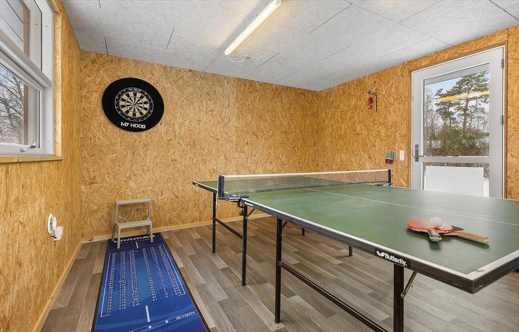 I det isolerede anneks venter feriens legerum. Bordtennisbolde suser gennem luften, dartpile rammer præcist, og grin og små sejrsråb fylder rummet med liv. Anneksets placering skaber den perfekte balance – her kan leg og energi få frit spil, mens dem, der trænger til ro, nyder stilheden i selve huset. Et sommerhus, der med lethed kombinerer fællesskab og alenetid, leg og afslapning – og skaber minder, der bliver hængende længe efter ferien er slut.