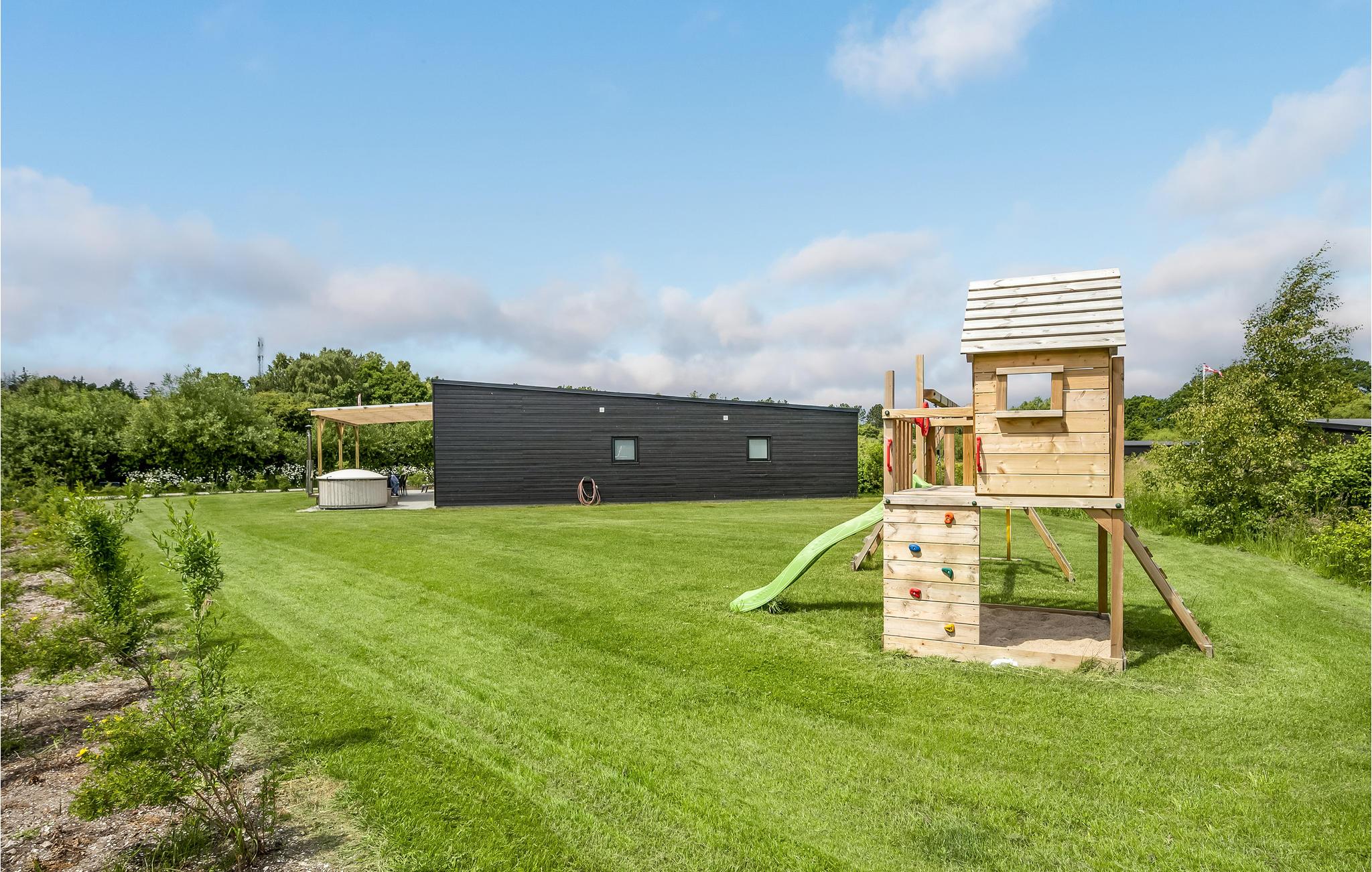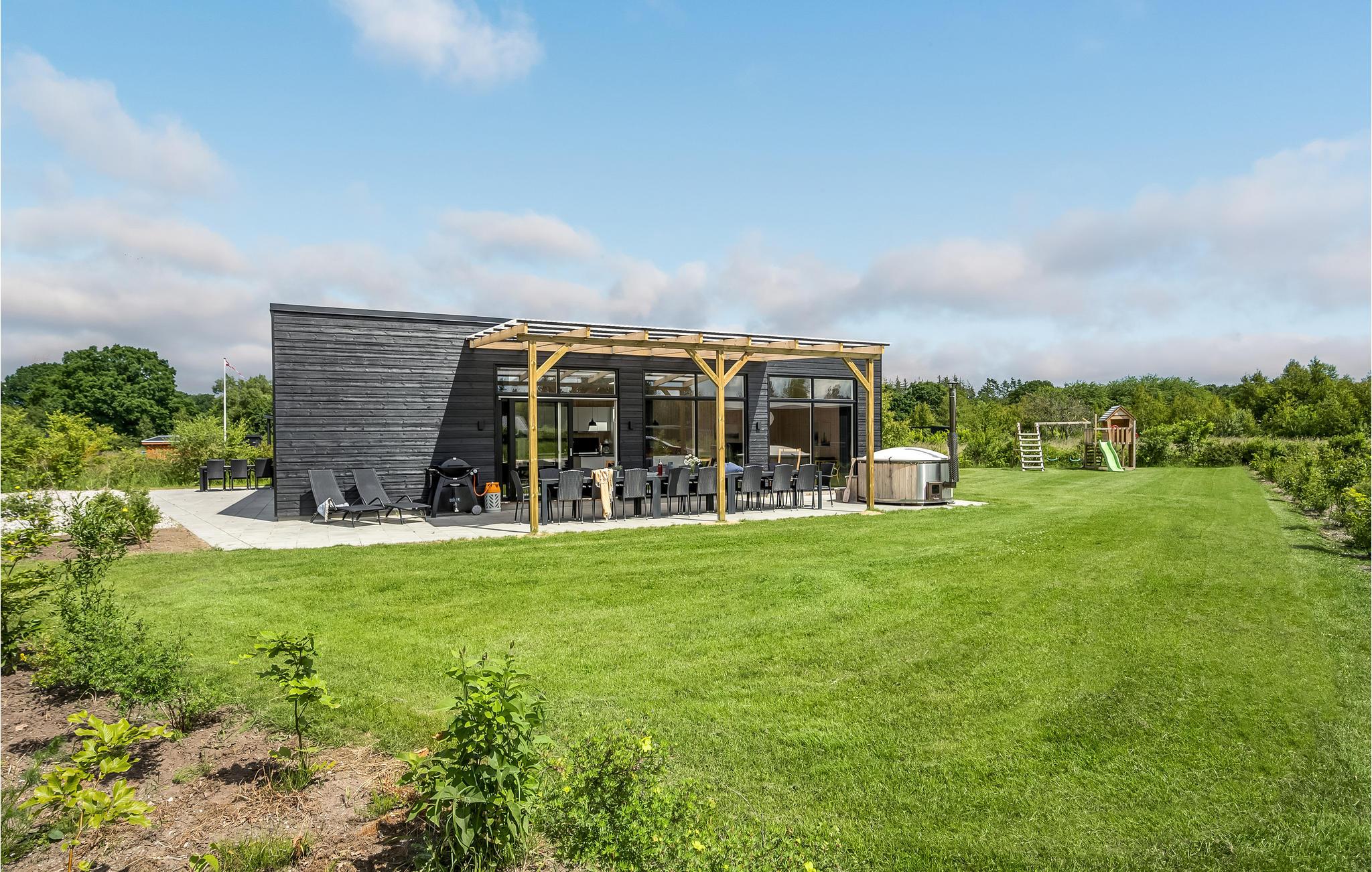 Her får I et feriehus, der opfylder alle ønsker for selv den mest kræsne gæst. Indenfor kan I slappe af i store, åbne og smagfuldt indrettede rum med charmerende trægulve- og vægge samt store vinduespartier, der slipper masser af dagslys ind og giver et dejligt udsyn til grønne omgivelser. Husets åbne, veludstyrede køkken lægger op til at tilberede overdådige feriemåltider, som efterfølgende kan nydes ved spisepladsen eller ude på terrassen. Et stort billiardbord, bordtennis og fladskærm med Chromecast sikrer indendørsunderholdningen, og spa og sauna lover rendyrket ferieafslapning. Men det stopper ikke dér. Udenfor finder I en kæmpe terrasse med spiseplads til mange gæster, liggestole til solbadning, grill til hyggelige grillaftener og sidst men ikke mindst udespa, hvor en drink kan nydes sammen med det dejligt varme vand og den friske luft. Til huset hører en stor græsplæne, hvor jeres børn og hunde (maks 2) kan boltre sig, spille bold og lege. Der er også et gyngestativ med klatretårn og rutsjebane.