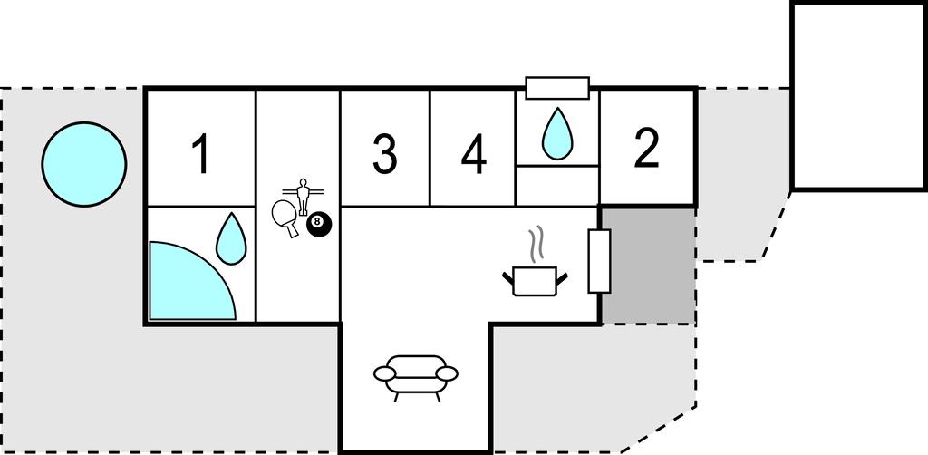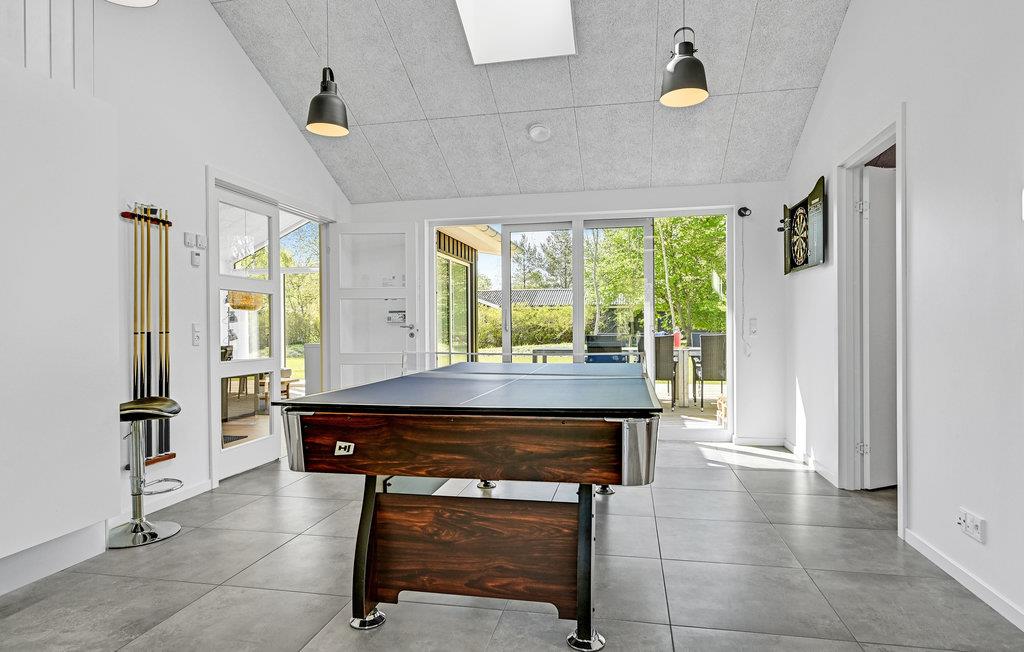 Velkommen til dette stilfulde feriehus med lækre faciliteter. Husets rum er åbne og lyse med store vinduespartier og god plads at slappe af på. I kan bl.a. spille bordtennis og billiard. Badeværelset er udstyret med et spabad til rendyrket ferieafslapning.