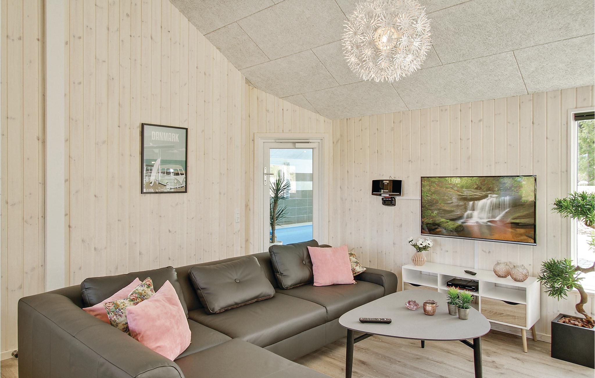 På Djurslands nordkyst, i Fjellerup, i et dejligt ugenert lukket område, ligger dette store feriehus med både swimmingpool og spabad. Her kan I holde en uforglemmelig ferie, hvor ingen får mulighed for at kede sig. Nyd livet i den store stue, der ligger i praktisk åben forbindelse med køkkenet. Der er både gode soveværelser og moderne badeværelser. Nyd livet på husets terrasser, hvor der både er læ, sol og skygge som ønsket. I kan gå til stranden, hvor der er god plads til at ligge hele den lange feriedag. Her kommer bundgarnfiskerne ind hver dag om sommeren med friske fisk. I området er der store skove og slotte og vejboder hvor I kan købe friske grønsager og frugt. Tag også en tur i Djurs Sommerland med mange aktiviteter for hele familien. I den hyggelige købstad Grenå kan gå en tur på torvet ved kirken ligesom I skal en tur på havnen og se hajerne i Kattegatcentret.