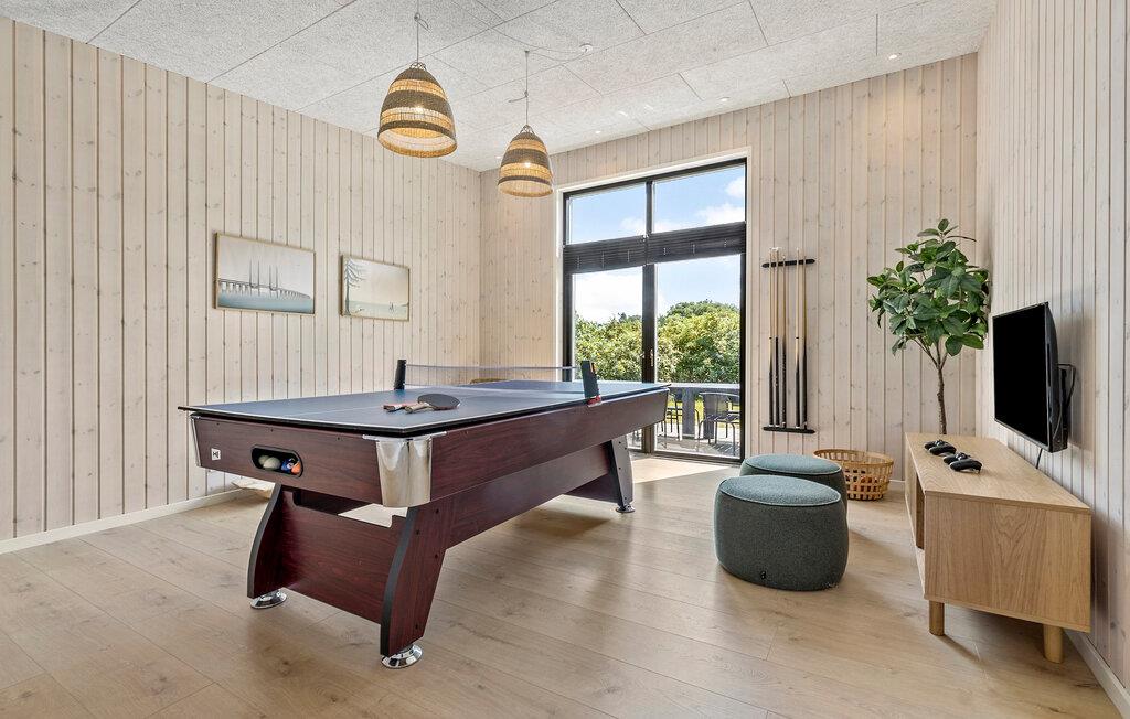 Rummeligt feriehus ved Fjellerup Strand med sauna, spabad og aktivitetsrum for hele familien.
