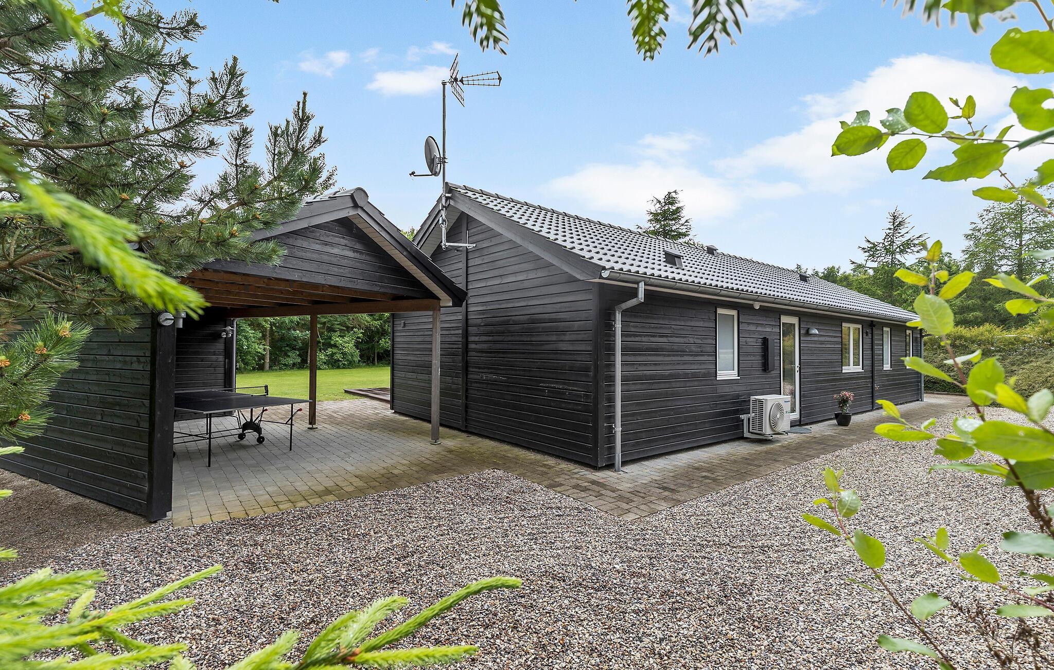 Lækkert feriehus med sauna, spa og stor grund tæt på Fjellerup Strand på Djursland.