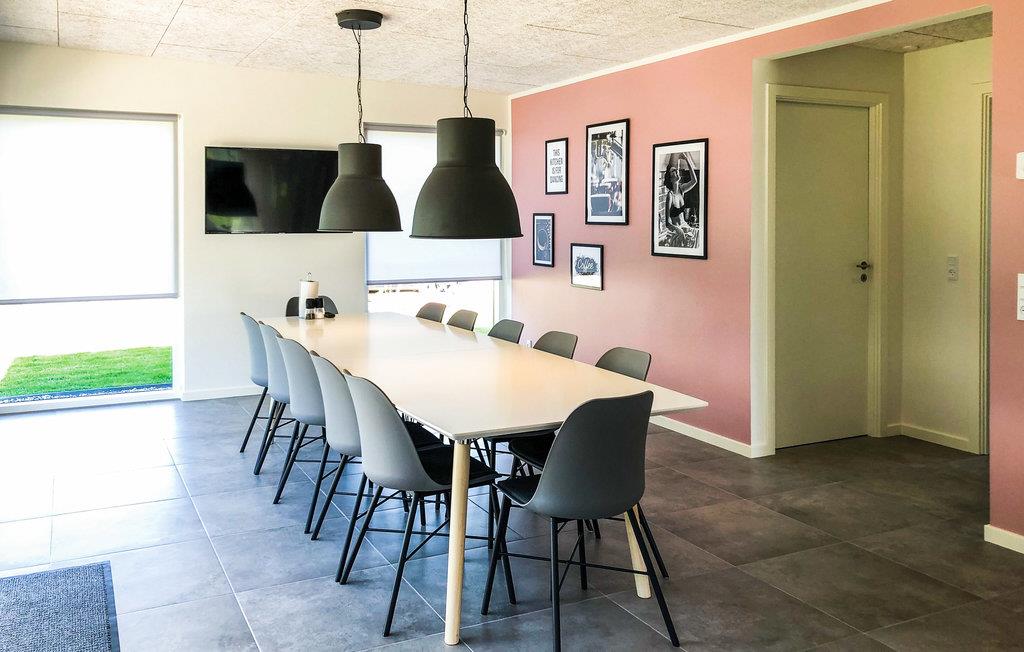 Stort, moderne sommerhus i Fjellerup med aktivitetsrum, vildmarksbad og tæt på stranden.