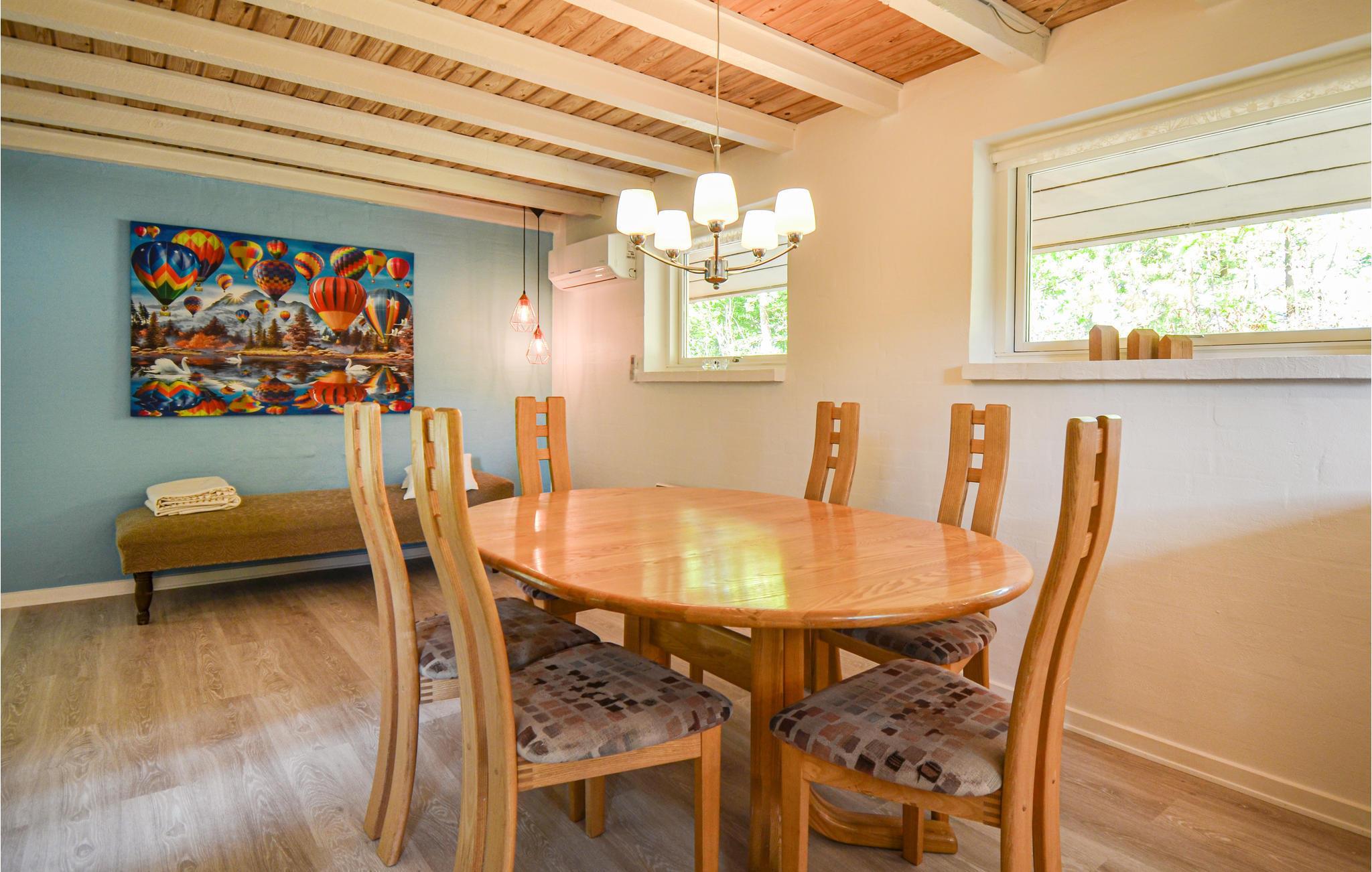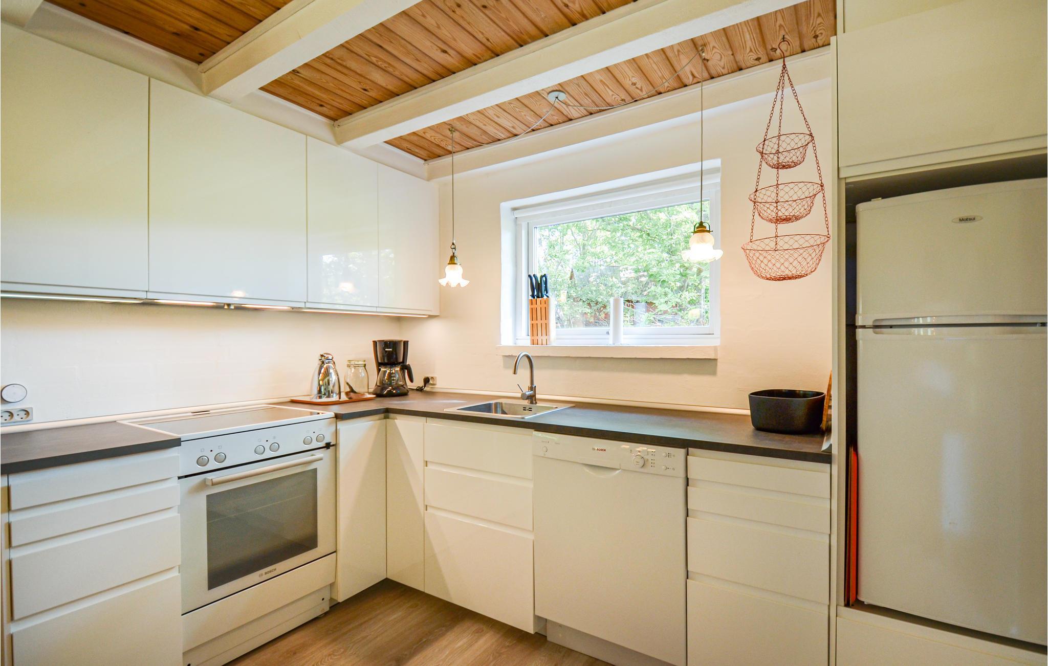 Der er lagt op til en skøn ferie på Norddjurs, hvor I finder dette indbydende feriehus, som ligger på en kuperet naturgrund. Huset er hyggeligt og komfortabelt indrettet med åbent køkken i stueetagen. Find sammen i spiseområdet til dagens måltider og læn jer godt tilbage i sofaerne. Sammensæt nogle lækre ferieretter i det lyse køkken, hvor der er gode rammer til at slå sig løs med hyggelige madprojekter.