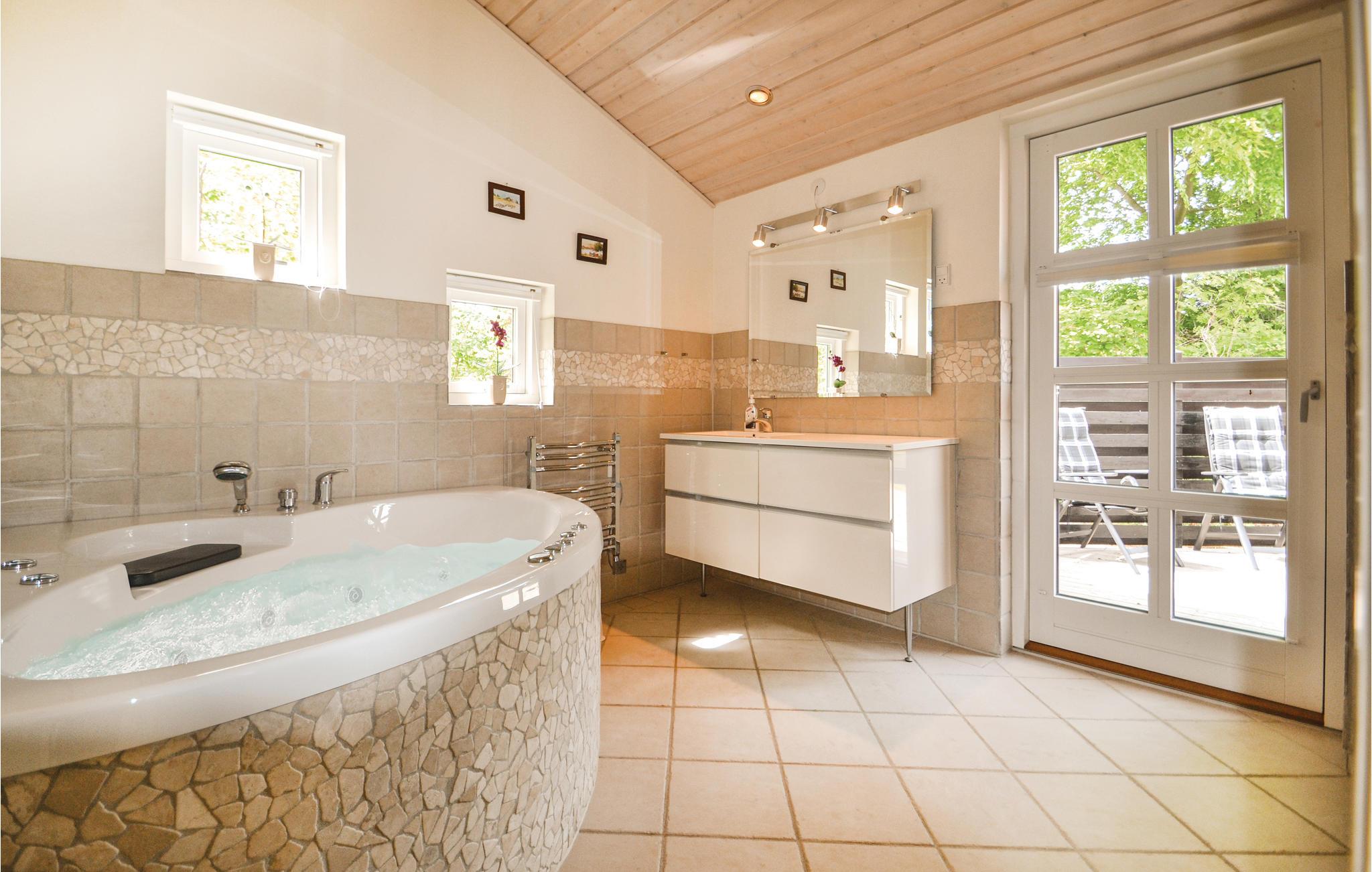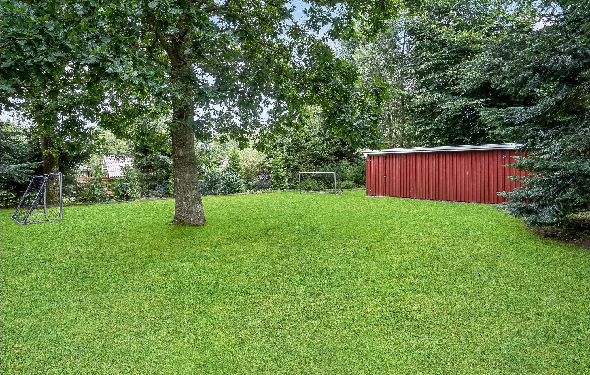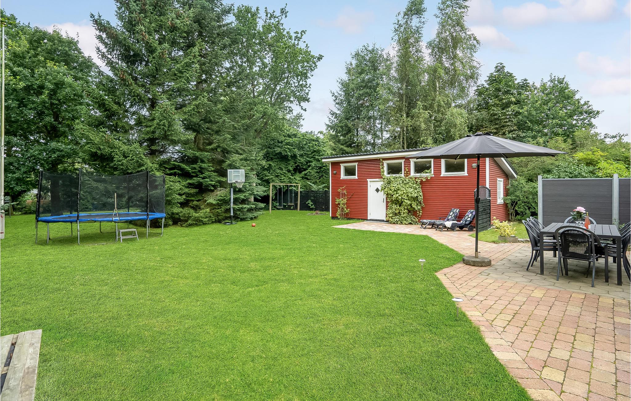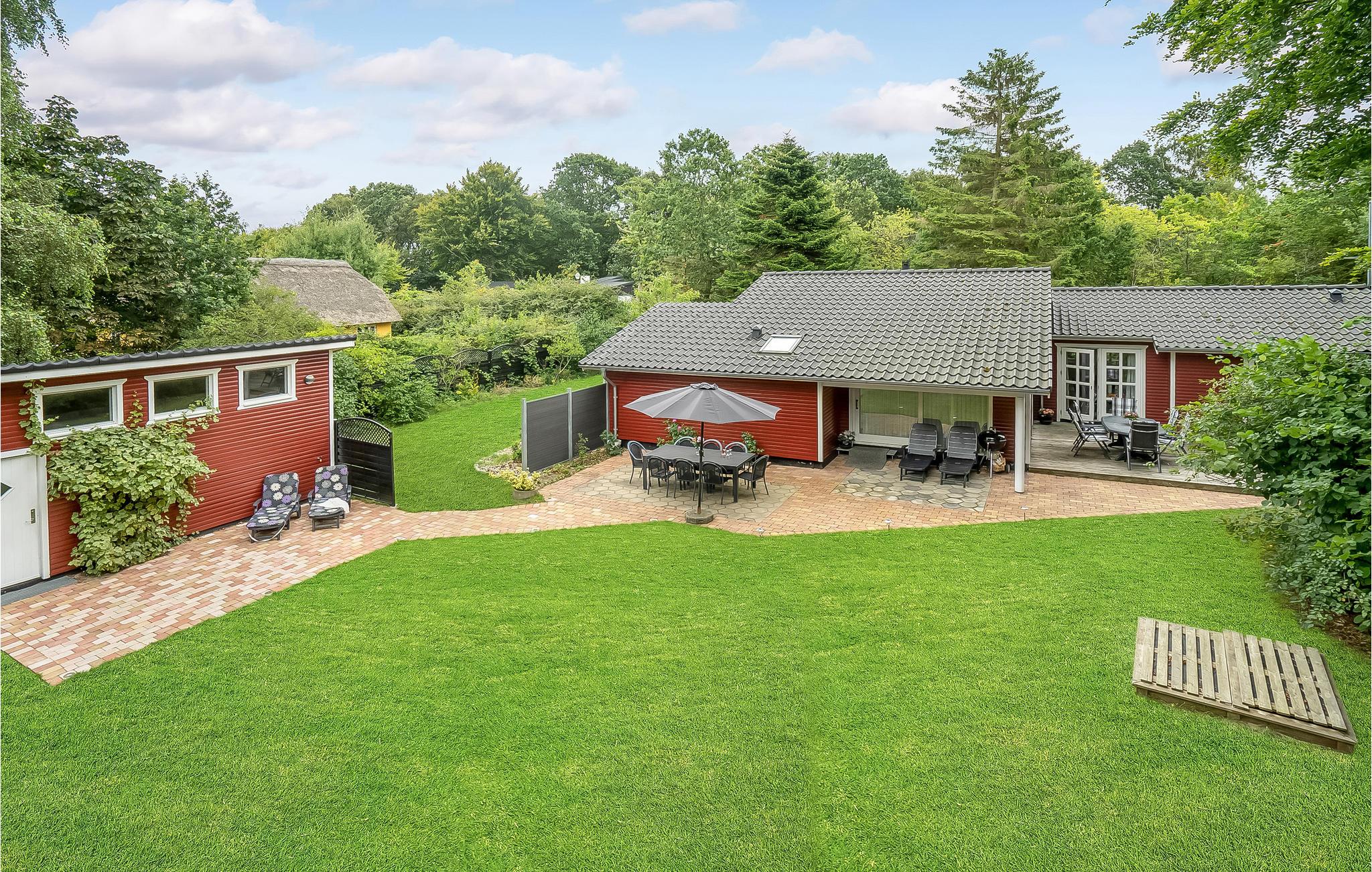 Dejligt sommerhus nær Fjellerup Strand med sauna, aktivitetsrum og stor terrasse til afslapning og leg.