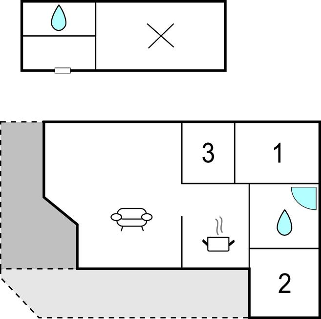 Badeværelse 7m2 (nr. 1) - WC. Varmt og koldt vand. Bruser