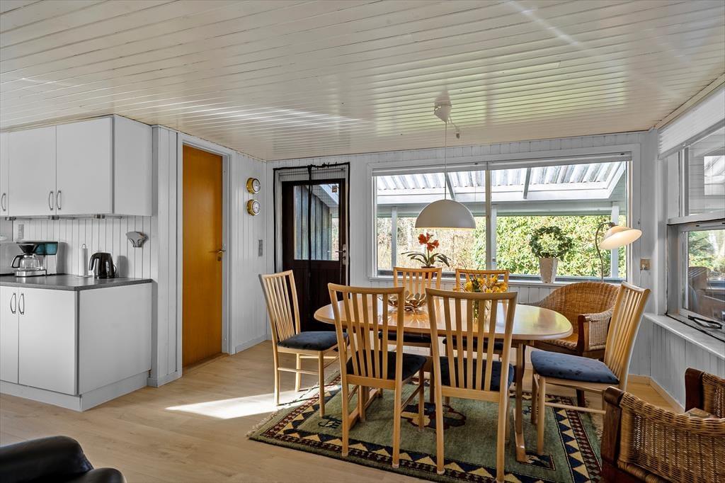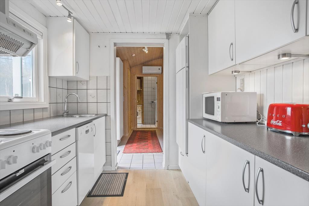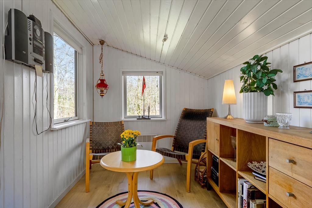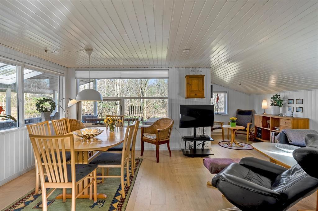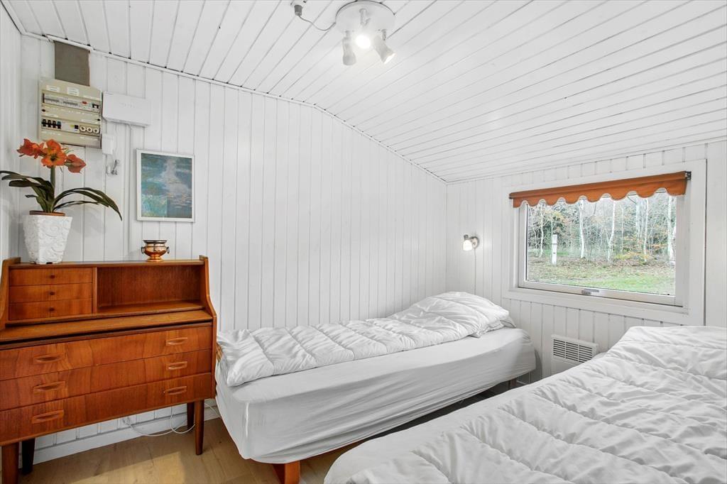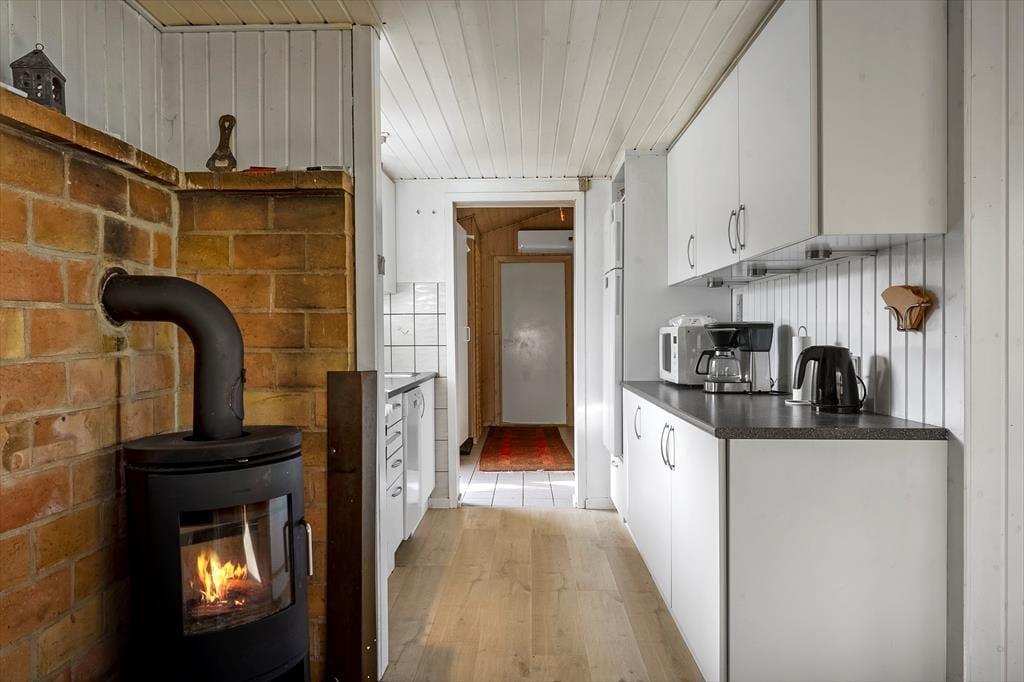 Sommerhuset er opført i 1965 og er senest blevet renoveret i 2020, så det fremstår pænt og velholdt. Med tre soveværelser, et badeværelse og en stue med åben forbindelse til køkkenet er planløsningen velfungerende, og I kan dermed sagtens samles seks personer i huset. Møblementet passer godt ind i de hyggelige rum – ikke mindst i stuen, hvor en brændeovn er med til at skrue op for den varme og venlige atmosfære. Apropos varme, så ligger en sauna i forlængelse af badeværelset, og den kan oplagt tages i brug, hvis I holder ferie på kølige tidspunkter af året. For øvrigt skal det bemærkes, at hvis I vil se dansk tv, skal det streames via Chromecast fra egne medbragte enheder.