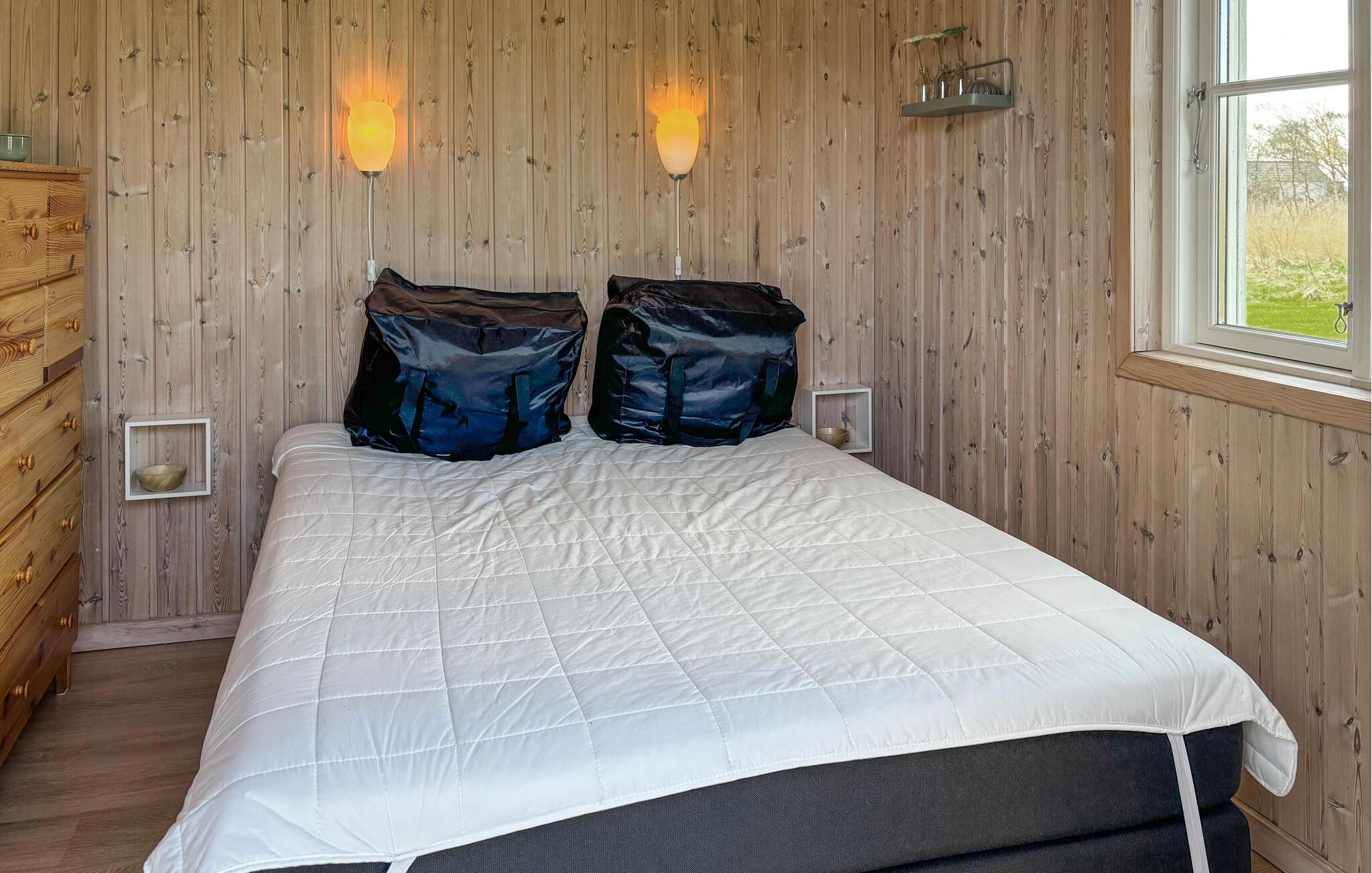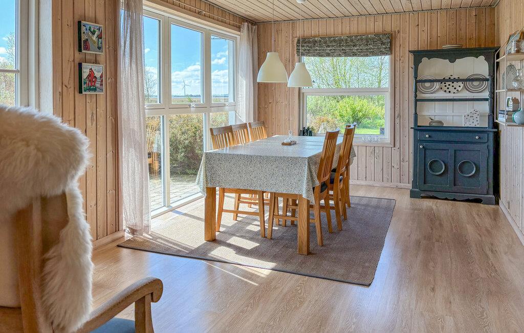 Tilbring en afslappende ferie i dette charmerende træhus, som tilbyder en varm og indbydende atmosfære. Træd ind i det komfortabelt møblerede interiør med lyse træpaneler og nyd den hyggelige sofahjørne, ideel til afslappende aftener. Det store vinduesparti foran huset lukker masser af lys ind og tilbyder en smuk udsigt ud over det fri. Lav mad i det praktiske køkken og find sammen i spiseområdet med udsigt over det åbne landskab.