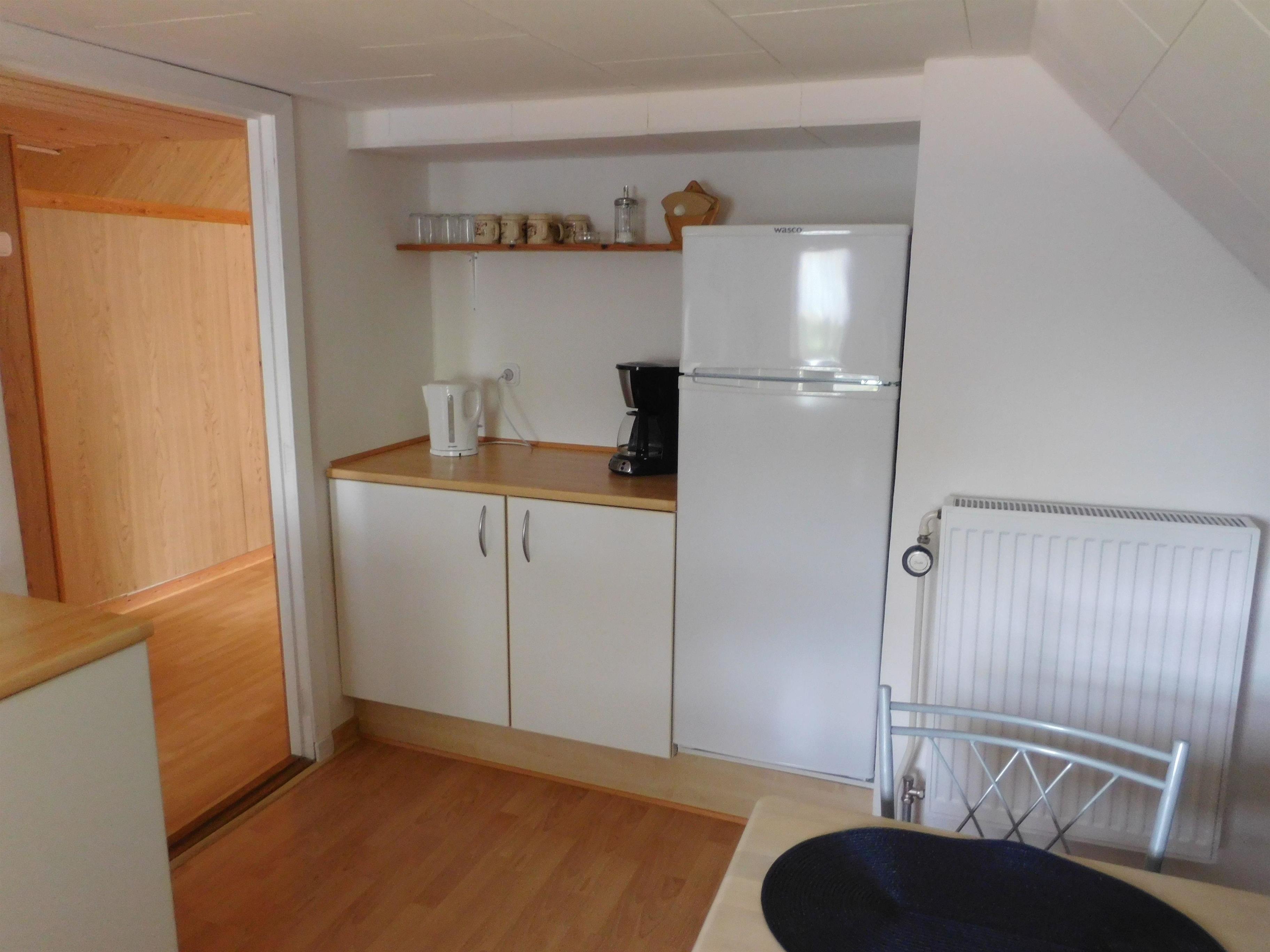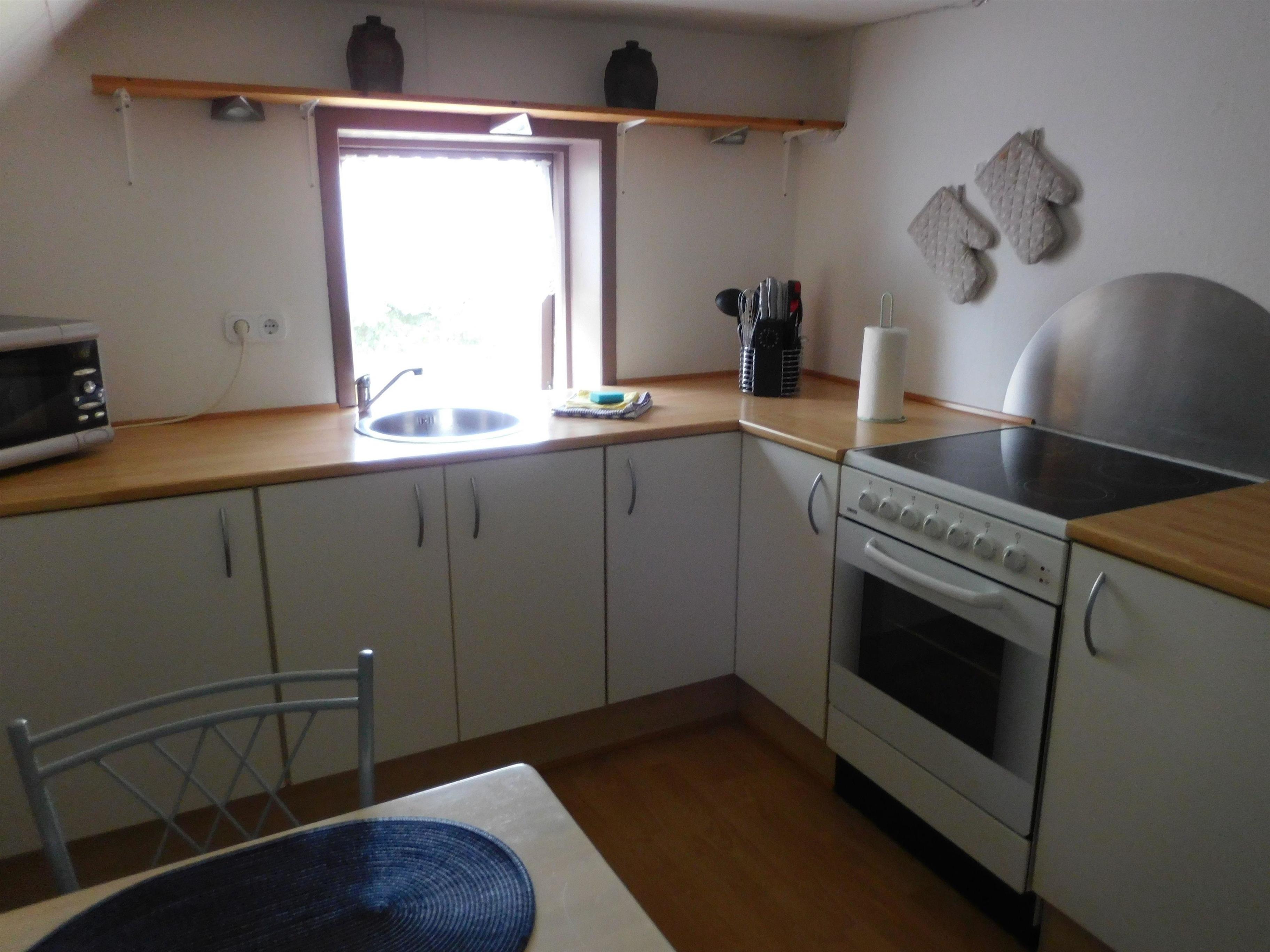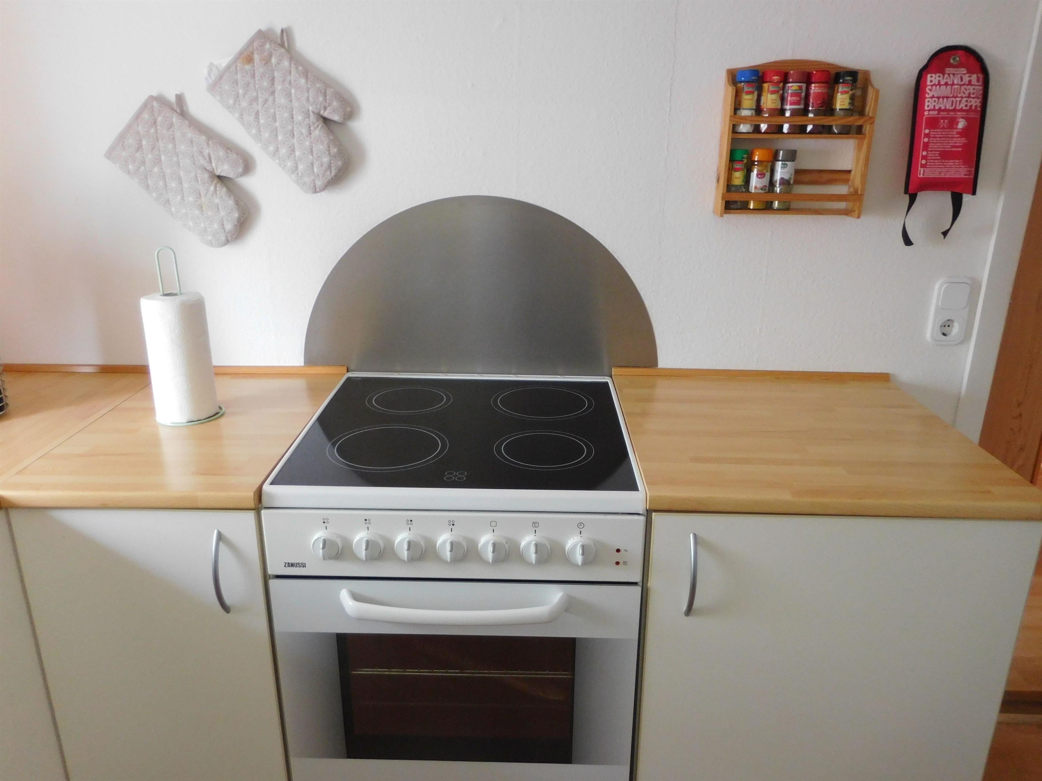 Die voll ausgestattete Küche bietet Ihnen neben einem 4*-Kühlschrank mit Gefrierfach einen Elektroherd mit Ceranfeld, eine Mikrowelle, eine Kaffeemaschine, einen Wasserkocher und einen Toaster/Brotröster. Ansonsten ist die Küche mit allen benötigten Kochutensilien ausgestattet. Des Weiteren ist ein Essplatz für 4 Personen vorhanden. Geschirrtücher, Schwamm und Spülmittel samt Küchenrolle stellen wir als Starterset bereit. Gewürze zum Kochen sind ebenfalls vorhanden.