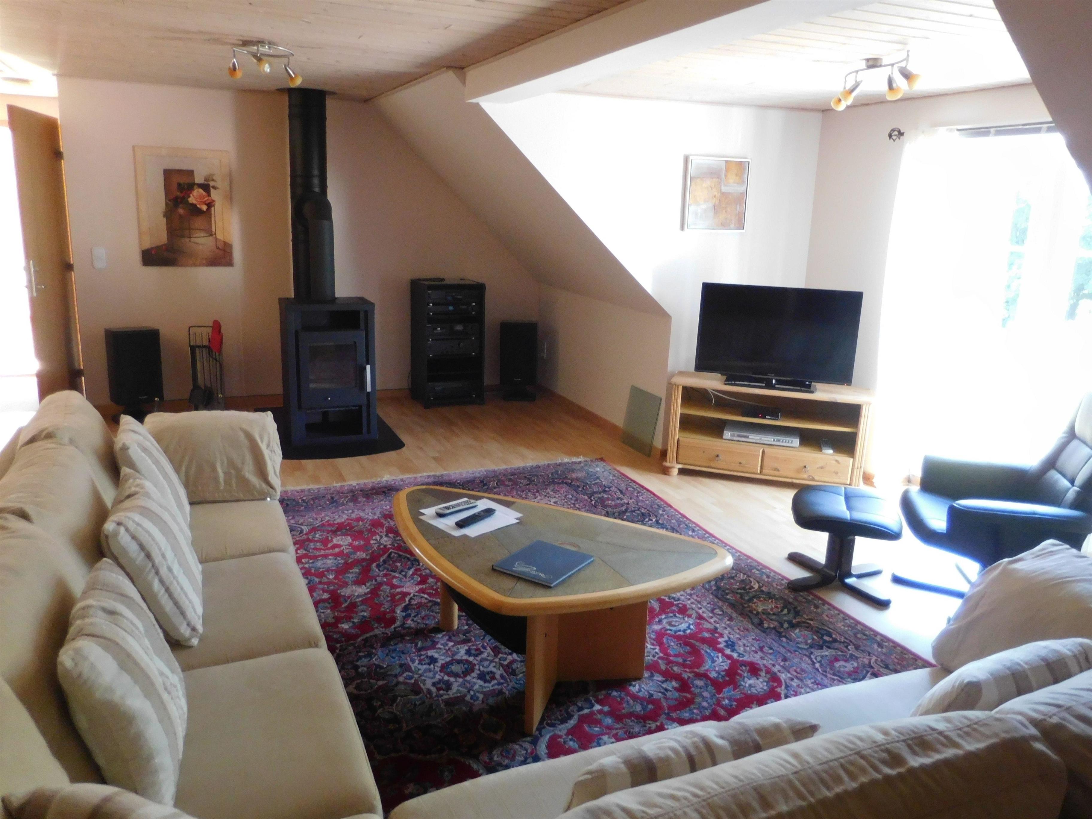 All das können Sie in Ruhe bei einem Aufenthalt bei uns in der gemütlichen, ländlich gelegenen 80 m² großen Ferienwohnung im Obergeschoss (etwas steilere Treppe, da dänische Norm) unseres Hauses, mit Kaminofen und einem Ausblick auf die Felder, erkunden.