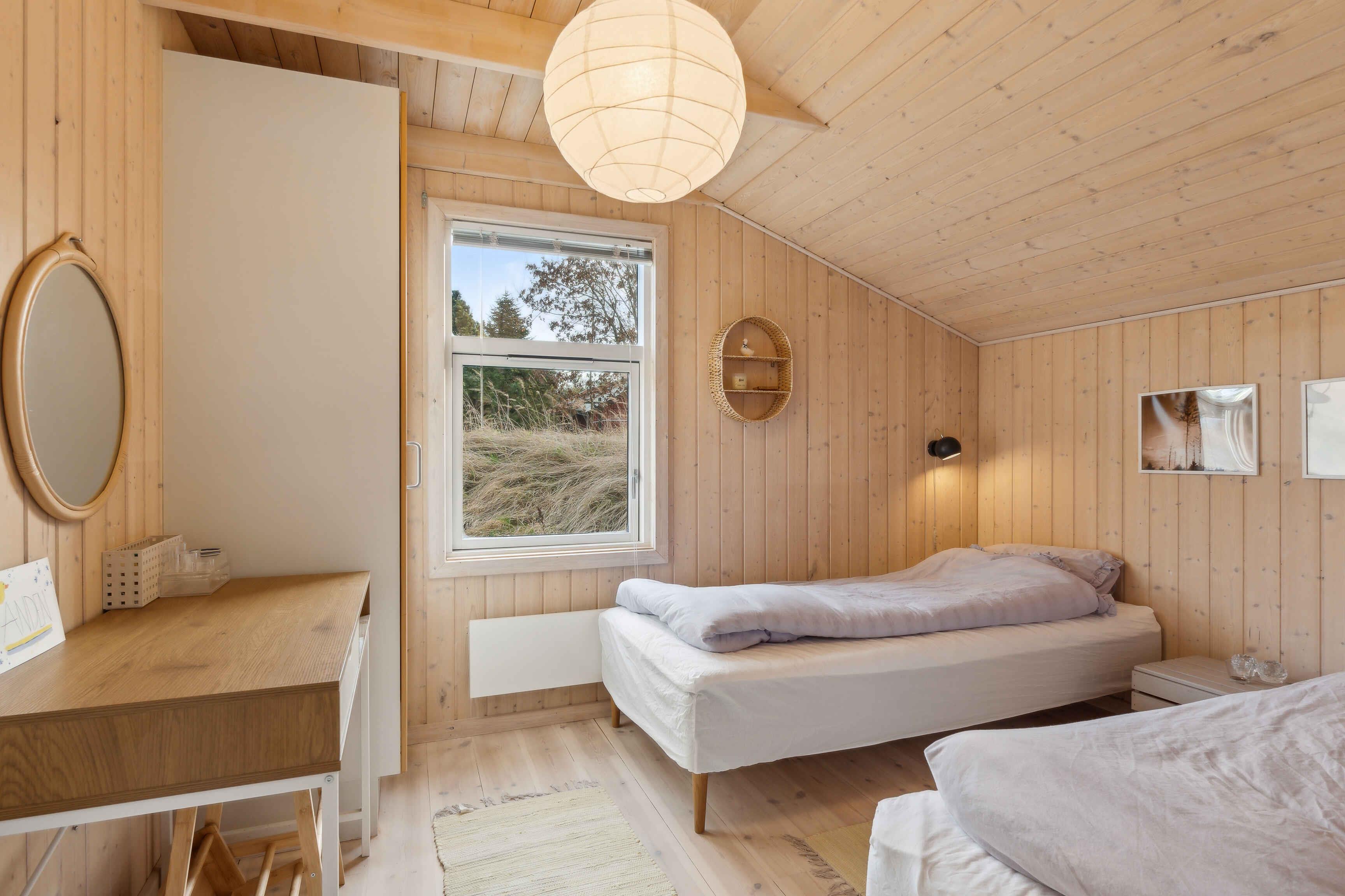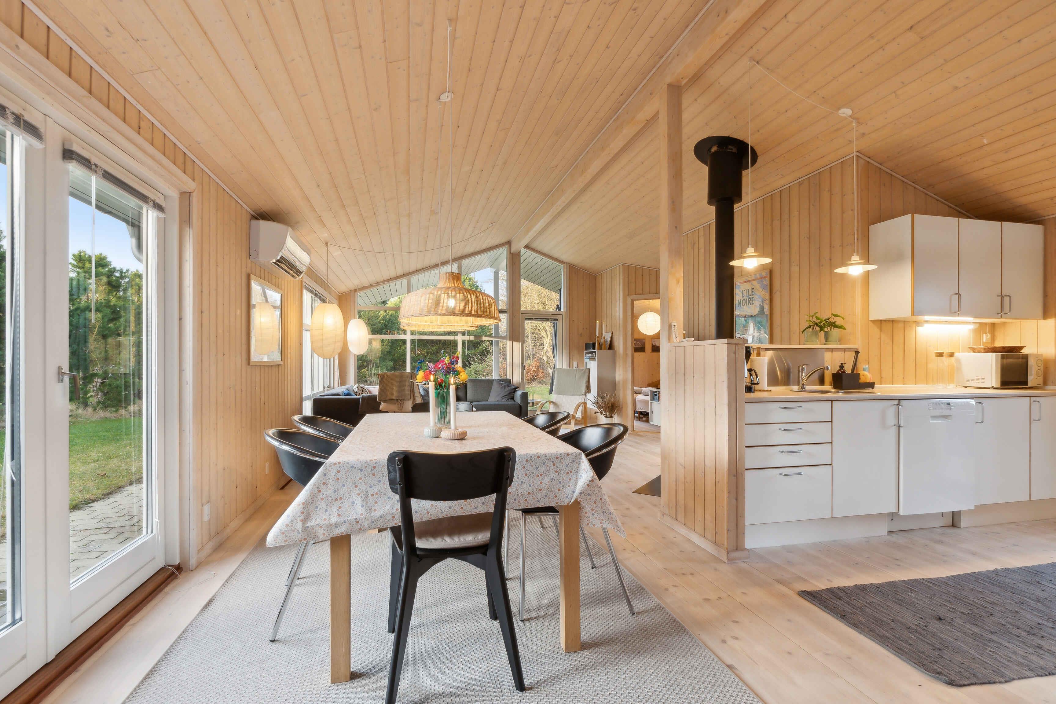 Velkommen til et feriehus, der kombinerer afslapning, natur og aktiviteter for hele familien. Dette velindrettede sommerhus på 86 m² er perfekt til en ferie i rolige omgivelser. Med tre soveværelser og seks sovepladser er der plads til både familie og venner. Huset er udstyret med moderne faciliteter som internet, varmepumpe og brændeovn. Her kan I slappe af efter en aktiv dag eller nyde aftenerne med hygge og samvær. Fra huset er der kort afstand til Kollerup Plantage. Her finder I MTB-ruter, shelters og en sauna – ideelt for både naturelskere og eventyrlystne. Kun 10 km væk ligger Slette Strand Feriecenter. Her kan I nyde varmvandsbassiner, sauna og en legeplads, der er perfekt for børnene. Thorup Strand ligger 11,5 km fra huset. Her kan I opleve det autentiske fiskermiljø og nyde en frisk gåtur langs stranden eller en dukkert i bølgerne. Området er kendt for sin alsidige natur. Fra skov til strand giver det mulighed for vandreture, cykling og afslapning. Naturen her er en oplevelse året rundt. Huset giver jer et godt udgangspunkt for ferieoplevelser. Uanset om I søger ro eller aktiviteter, er der noget for enhver smag i området omkring sommerhuset. Tag på opdagelse, skab minder og nyd en ferie, hvor komfort og oplevelser går hånd i hånd. Dette sommerhus er oplagt til jeres næste ferieeventyr.