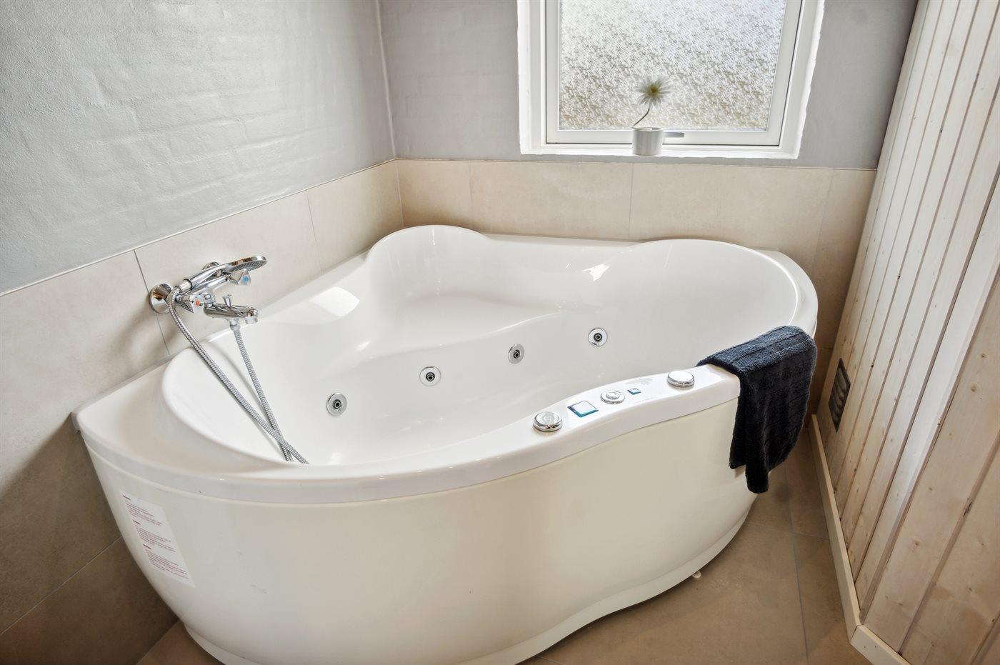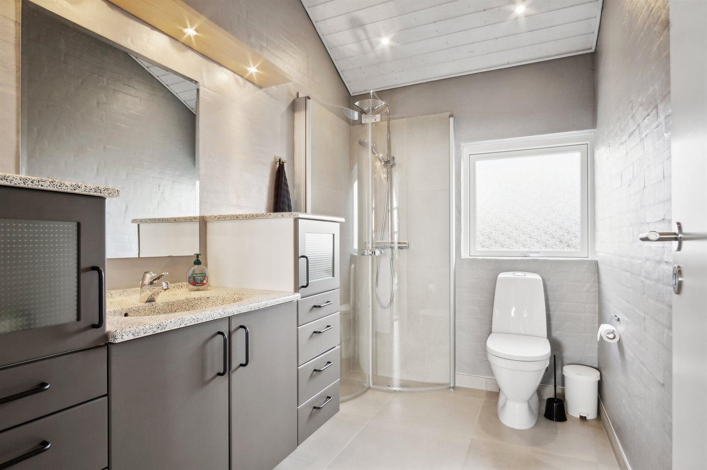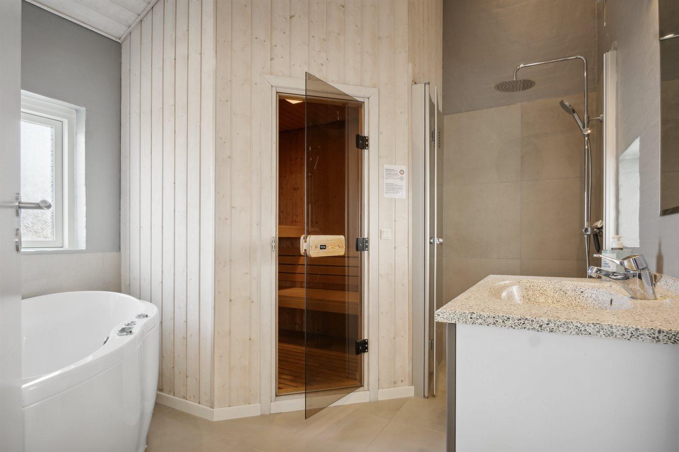 Der er 2 badeværelser med bruseniche og 2 toiletter. Der er gulvvarme på 2 badeværelser. I saunaen er der mulighed for afslapning.