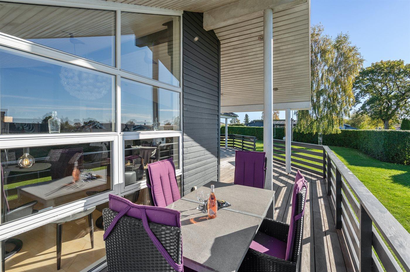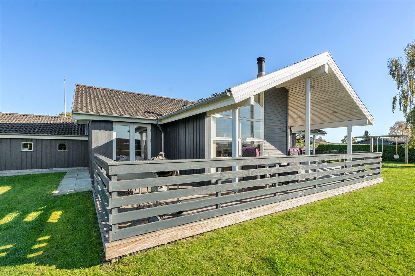 Ferieboligen er beliggende på en 909 m² stor havegrund. Der er 400 m til havet. Nærmeste forretning er beliggende i en afstand af 8000 m. Til ferieboligen hører åbent og 16 m2 overdækket terrasseareal. Til ferieboligen hører åbent terrasseareal. Der er redskabsrum. Gynge. Sandkasse.