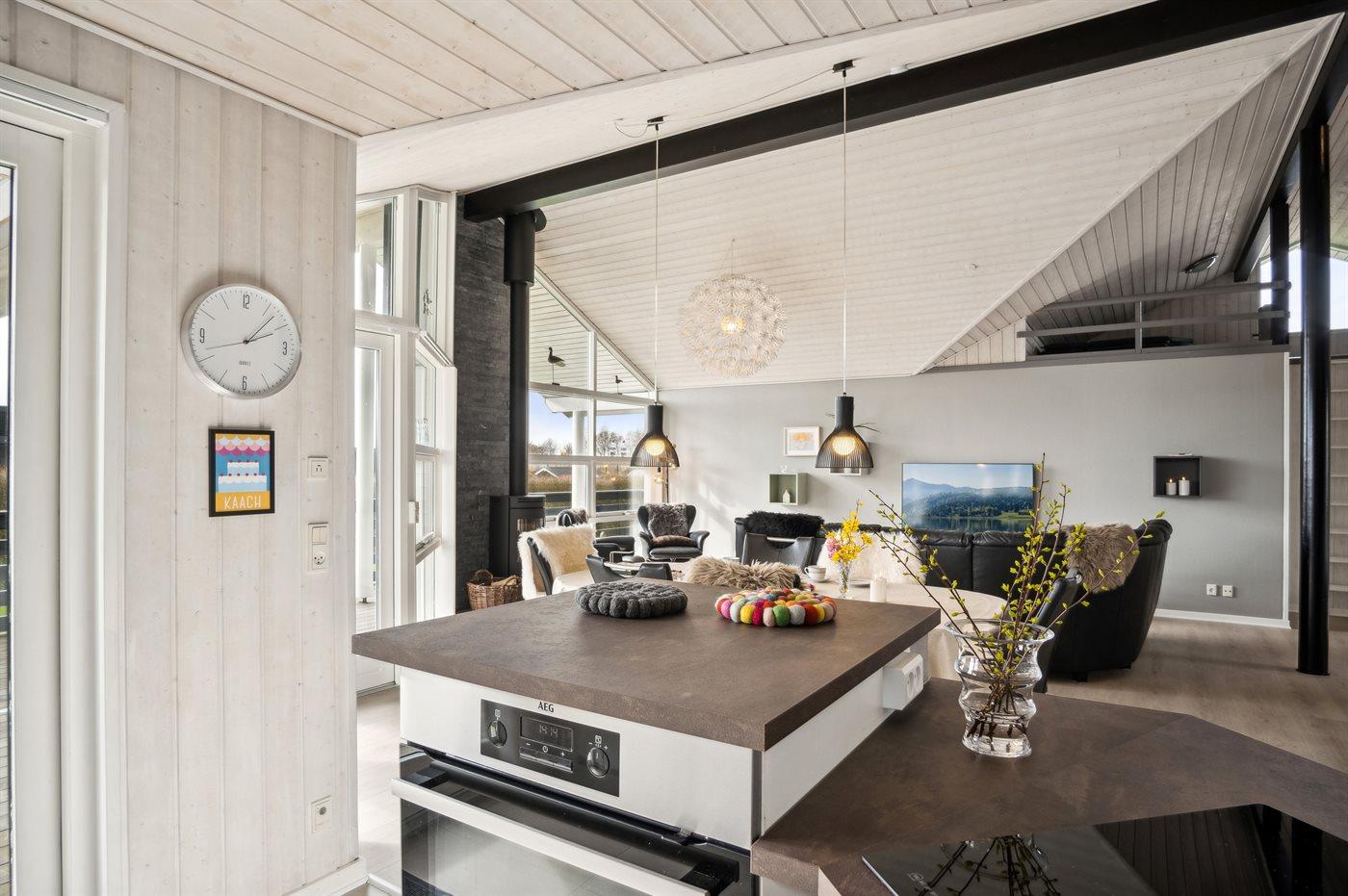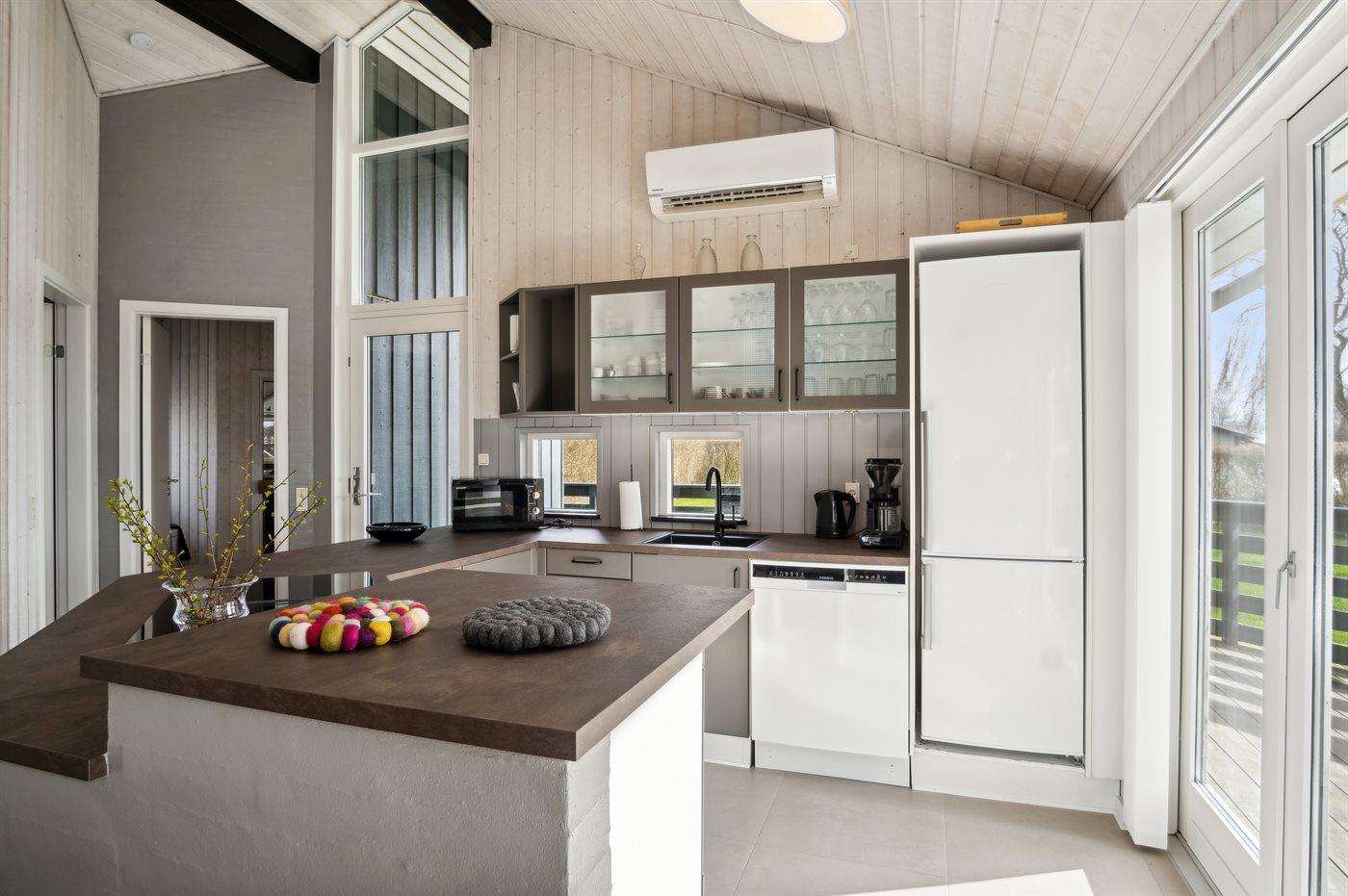 Køkkenet er udstyret med 1 køleskab. Der er 4 keramiske kogeplader, varmluftovn, mikrobølgeovn samt opvaskemaskine.