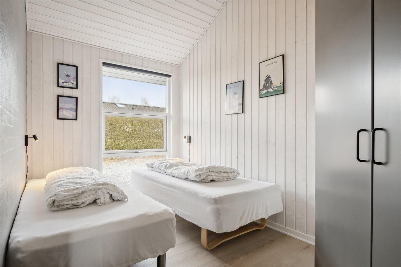 Der er i alt 4 soveværelser. Sovepladserne fordeler sig på: 6 sovepladser i dobbeltsenge. 2 sovepladser i enkeltsenge. 2 sovepladser på madrasser. 2 af disse sovepladser befinder sig på husets hems. Derudover er der 1 stk. barneseng.