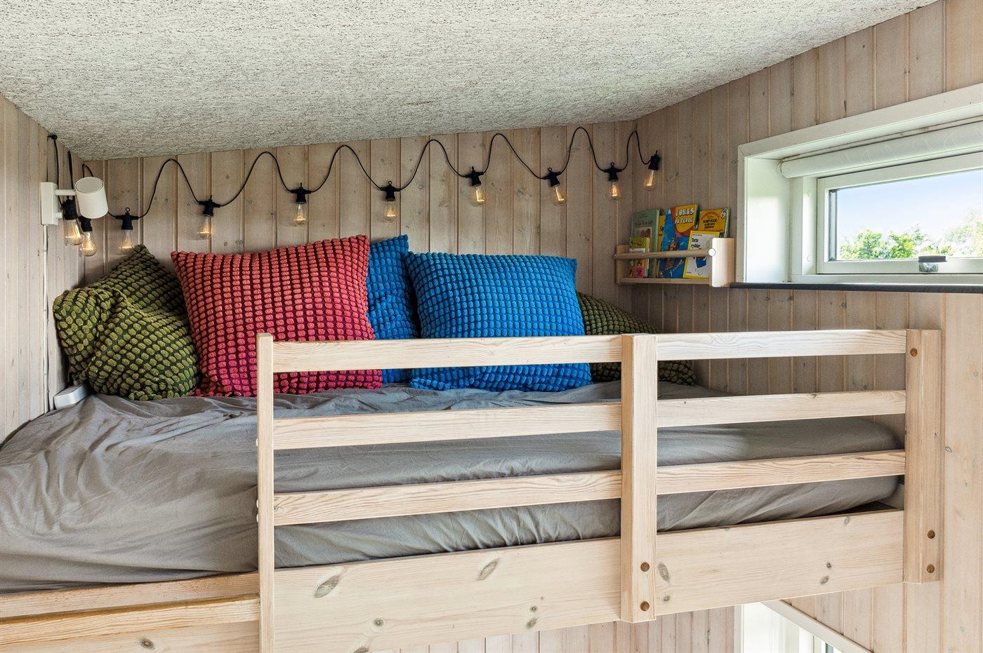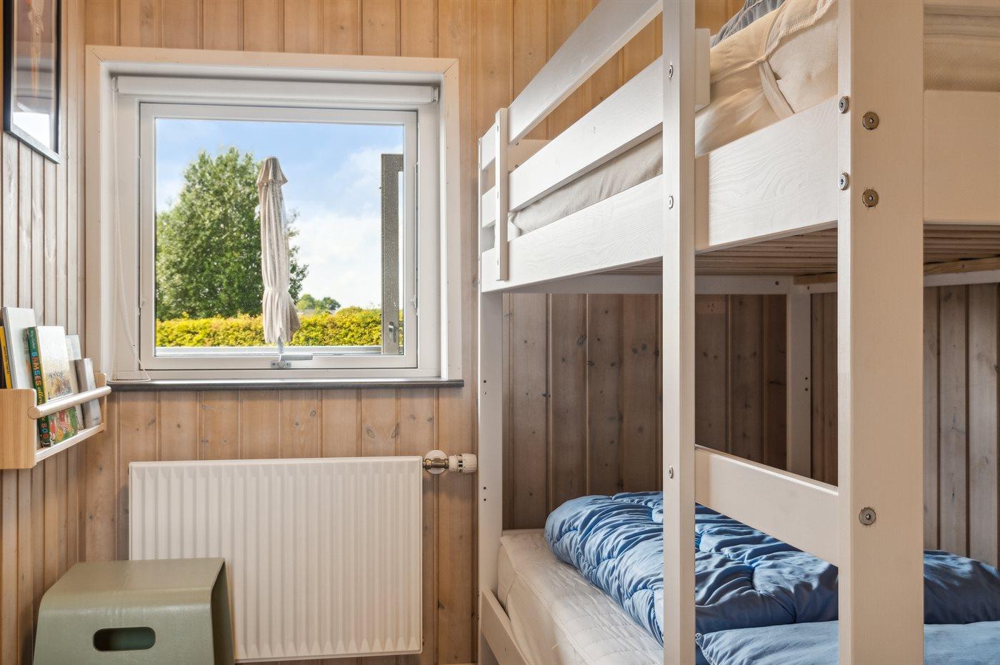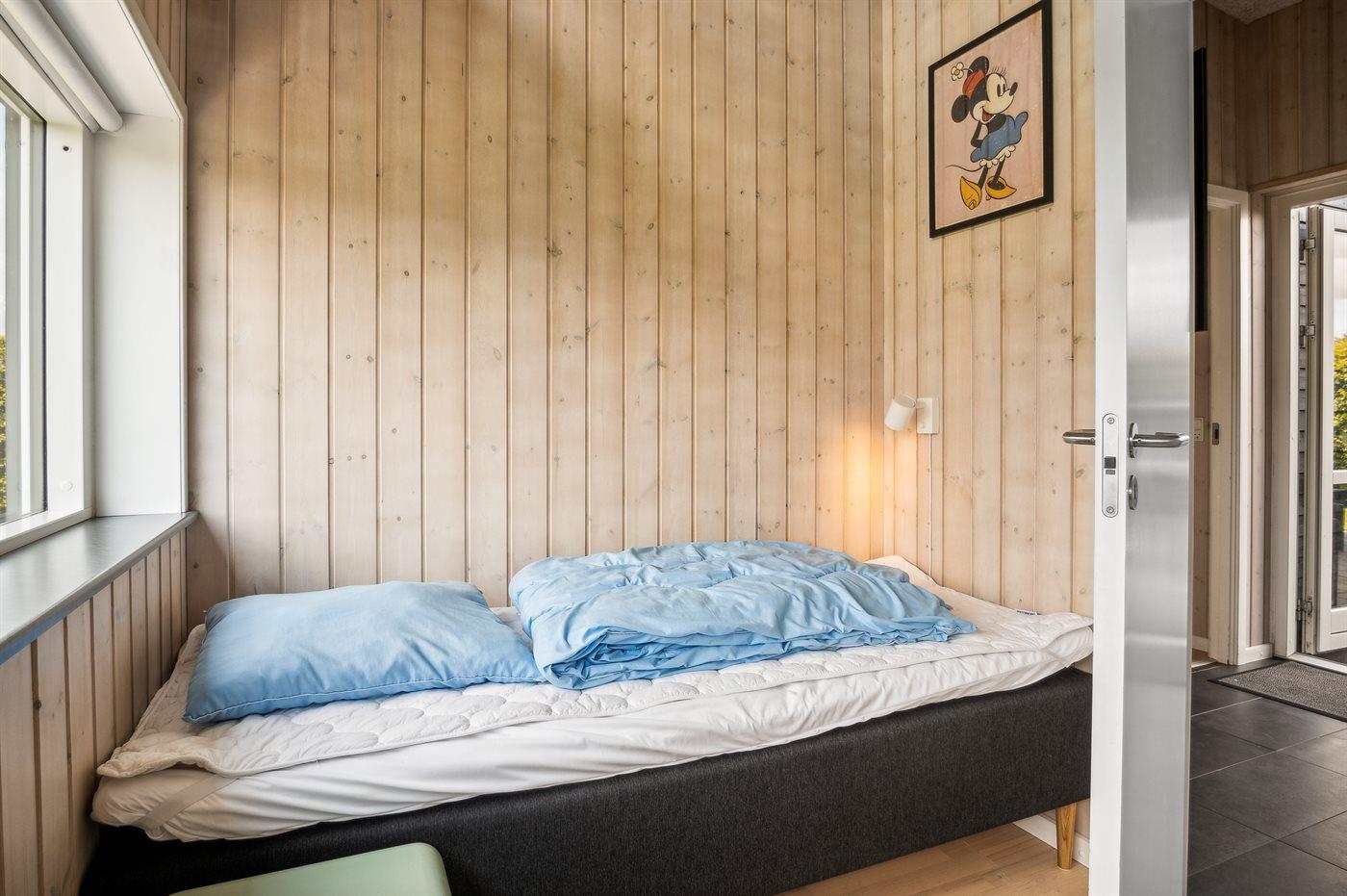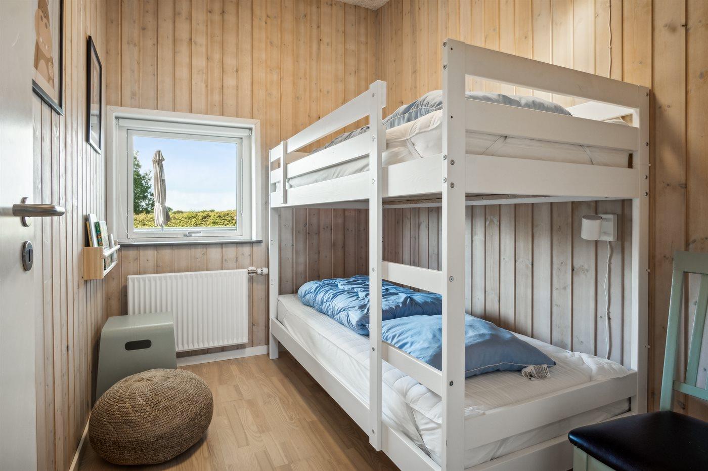 Der er i alt 4 soveværelser. Sovepladserne fordeler sig på: 4 sovepladser i dobbeltsenge. 2 sovepladser i enkeltsenge. 2 sovepladser i køjeseng. Derudover er der 1 stk. barneseng.