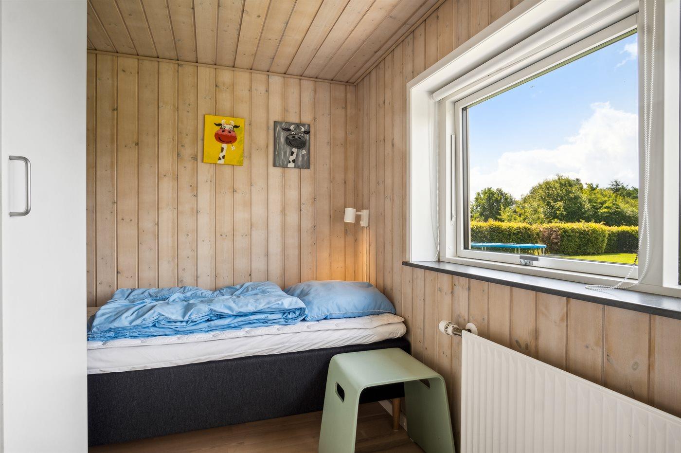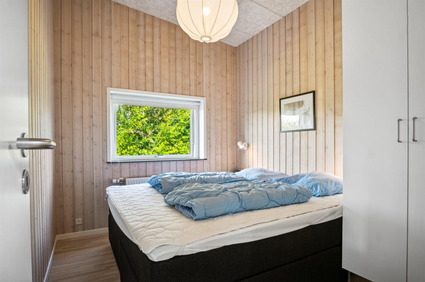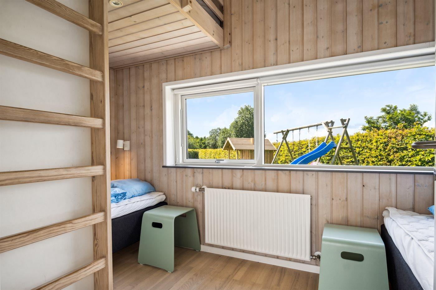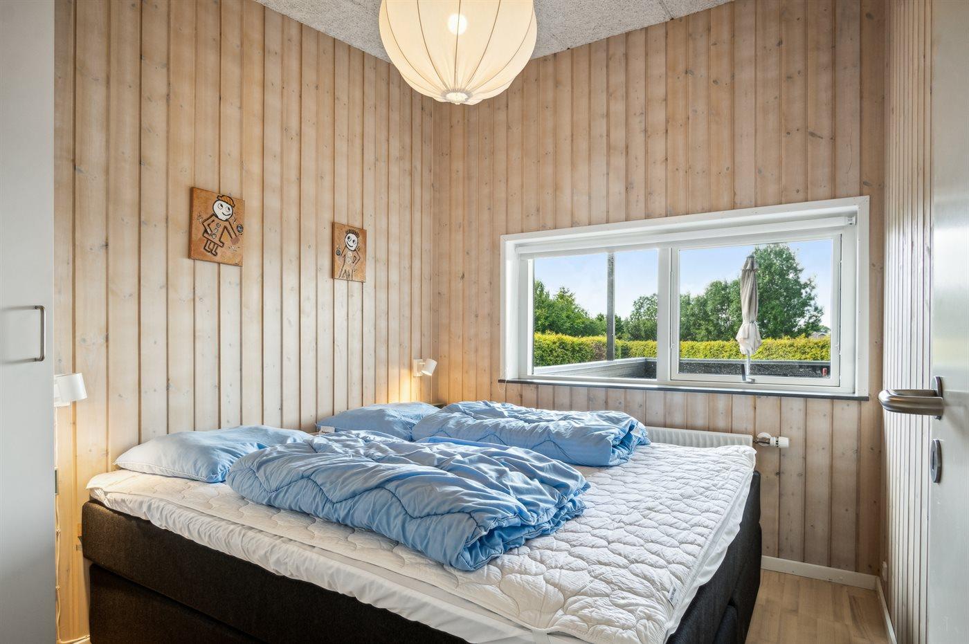 Der er i alt 4 soveværelser. Sovepladserne fordeler sig på: 4 sovepladser i dobbeltsenge. 2 sovepladser i enkeltsenge. 2 sovepladser i køjeseng. Derudover er der 1 stk. barneseng.