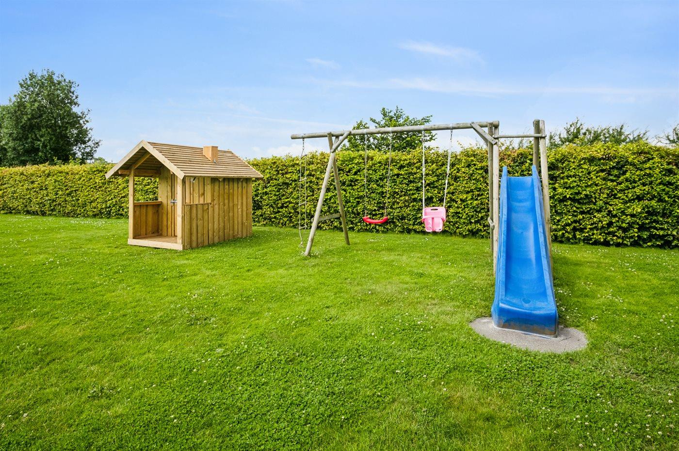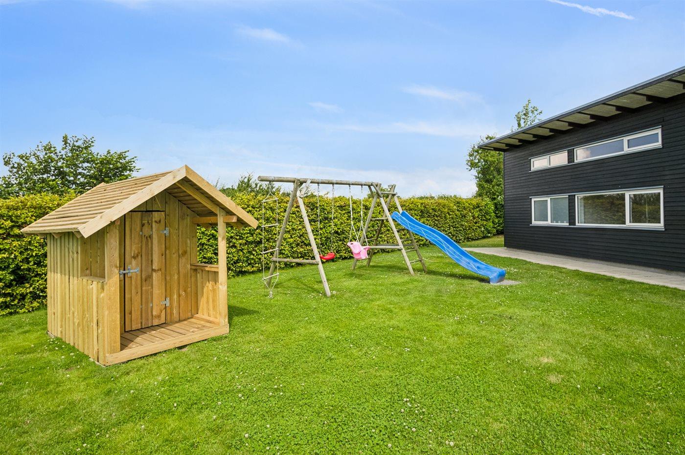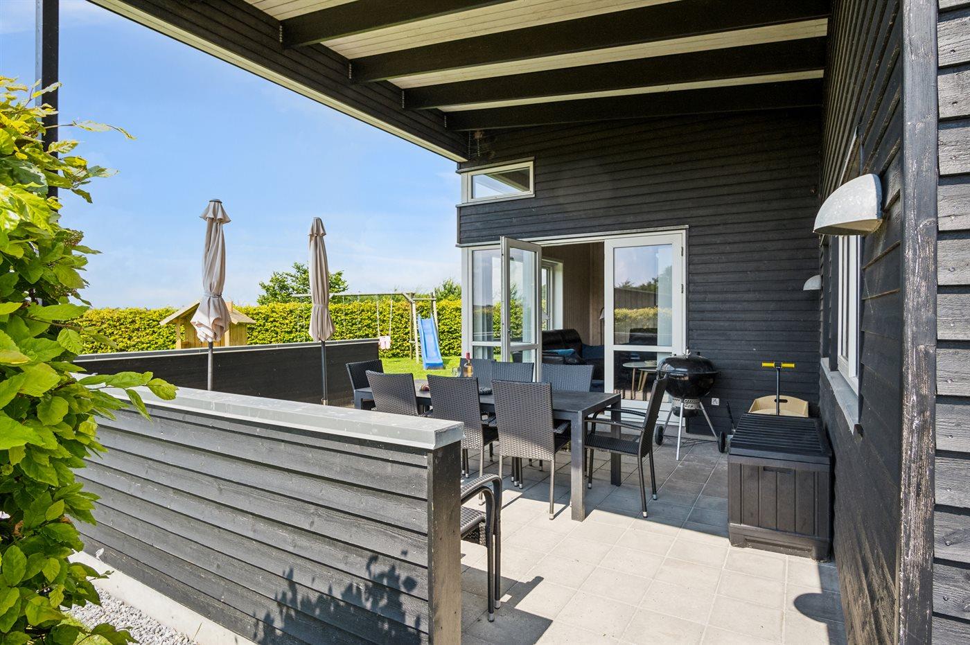Ferieboligen er beliggende på en 1171 m² stor naturgrund. Der er 500 m til havet. Nærmeste forretning er beliggende i en afstand af 5000 m. Der er en golfbane i en afstand af 12000 m. Til ferieboligen hører åbent terrasseareal. Desuden er der overdækket terrasse. Gynge. Sandkasse. Legehus. Trampolin. Rutchebane. Grill til rådighed. Parkering ved ferieboligen.