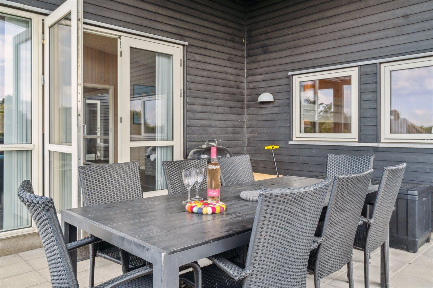 Sommerhuset egner sig til 8 personer. Ferieboligen er på 119 m² og er bygget i 2010. Det er tilladt at medbringe 2 husdyr. Der er jordvarme. Der er gulvvarme i alle klinkegulve. Ferieboligen har vaskemaskine. Tørretumbler. Frysekapacitet på 114 liter. Der er desuden brændeovn. Til de små er der 2 stk. barnestole.