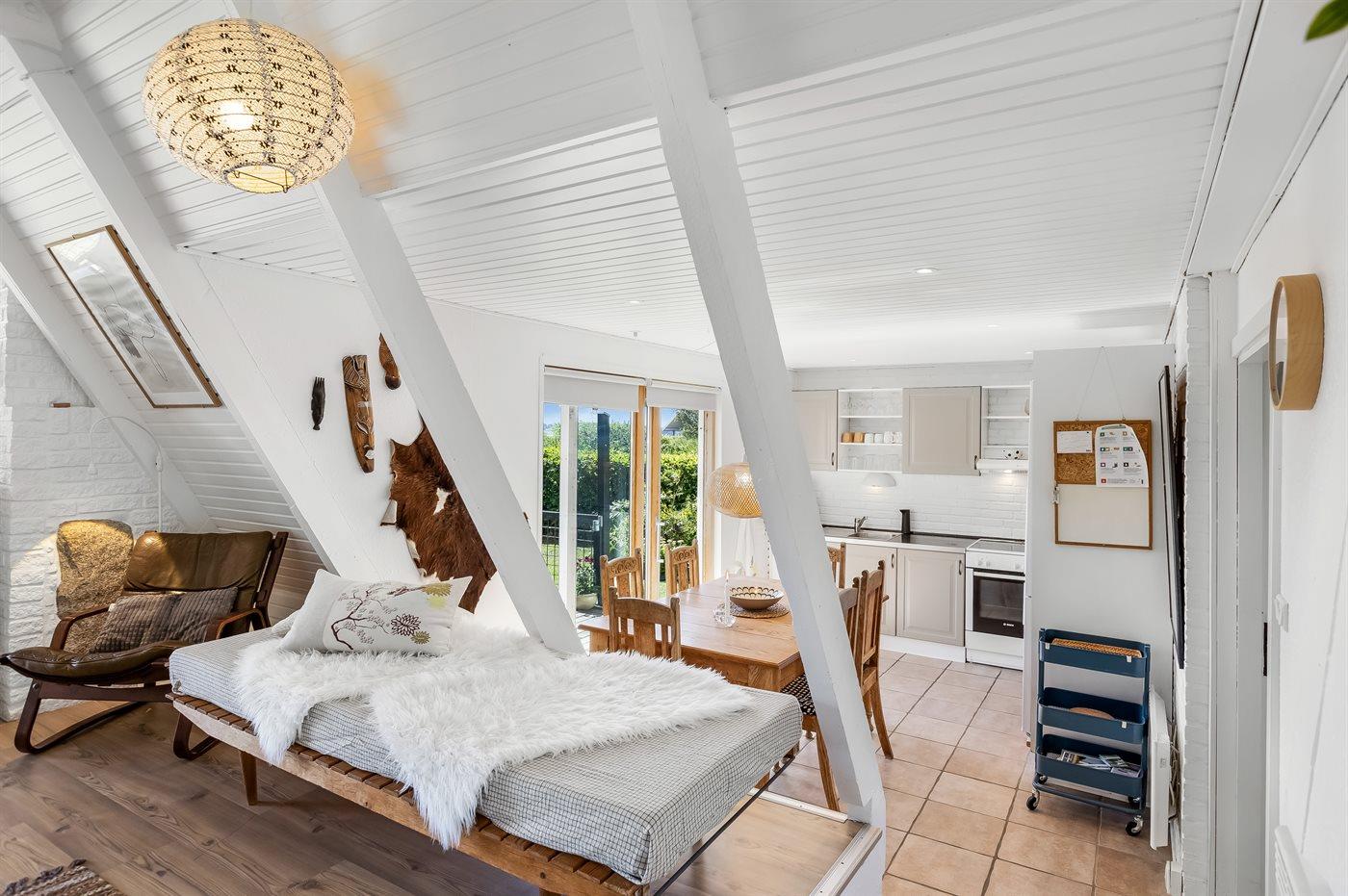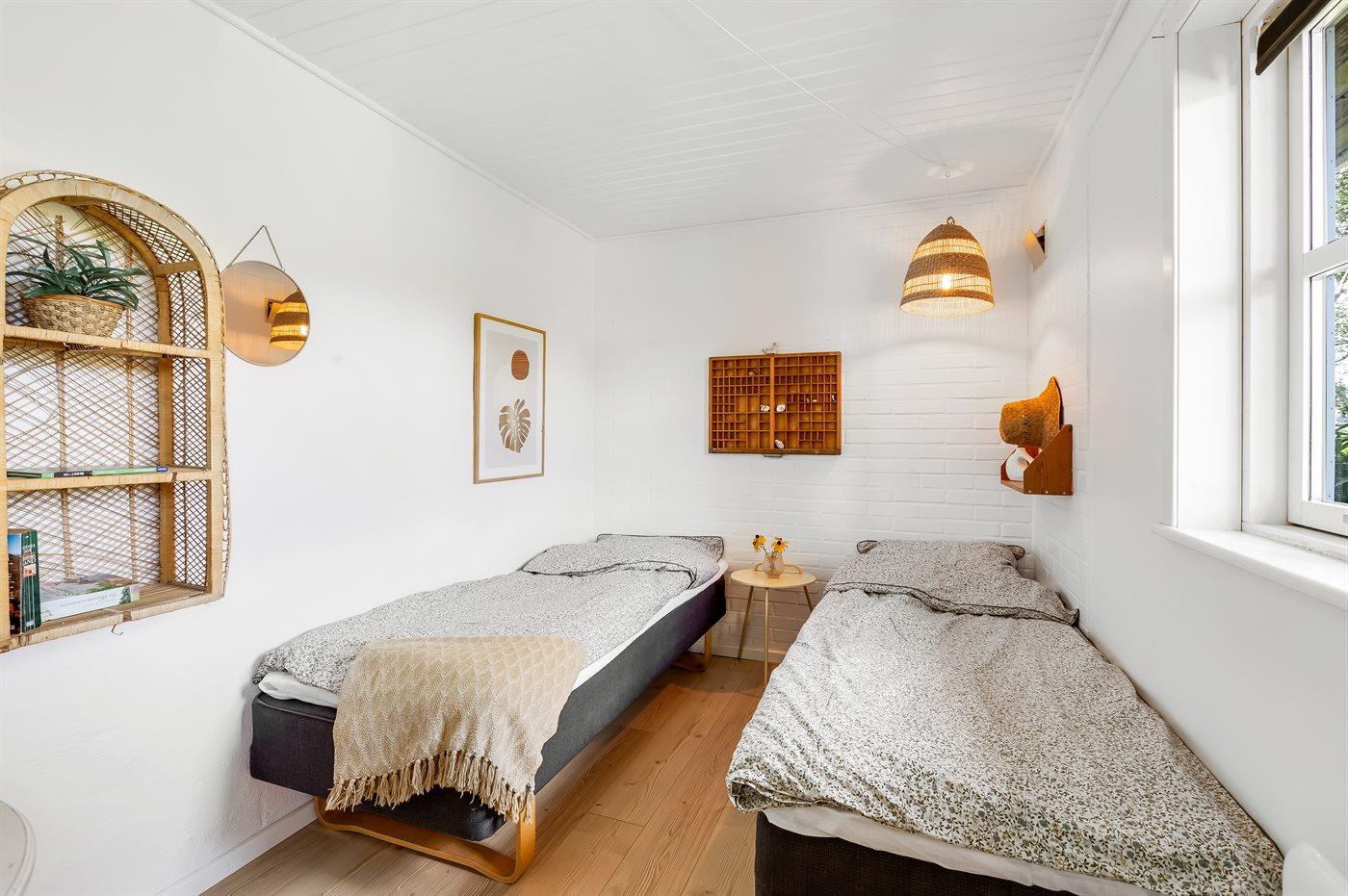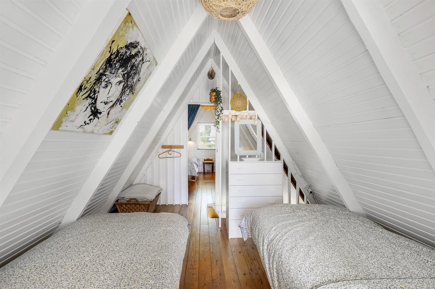 I råder over fire soveværelser, som fordeler sig med to i stueplan og to på første sal. På førstesalen er værelserne adskilt med forhæng, hvilket skaber fleksibilitet og et uformelt, hyggeligt præg. Sommerhuset er indrettet med et lyst og åbent køkken-alrum med god plads til fælles måltider og indendørs hygge.