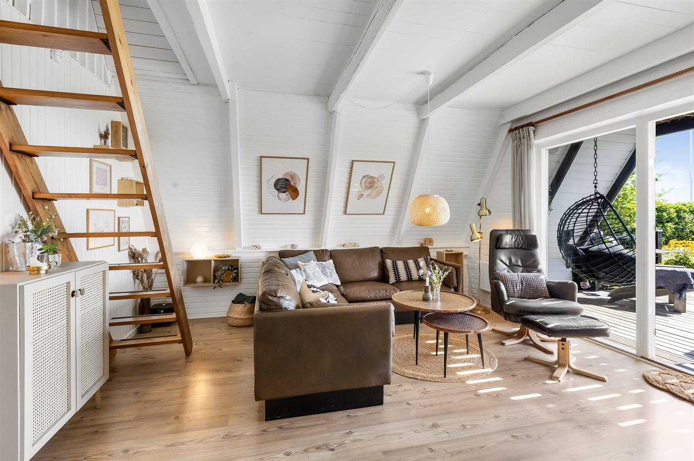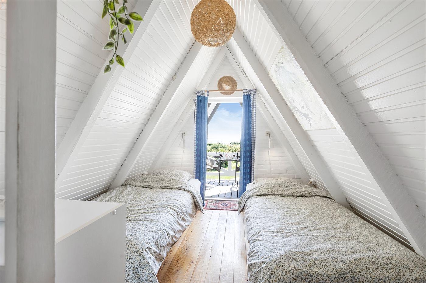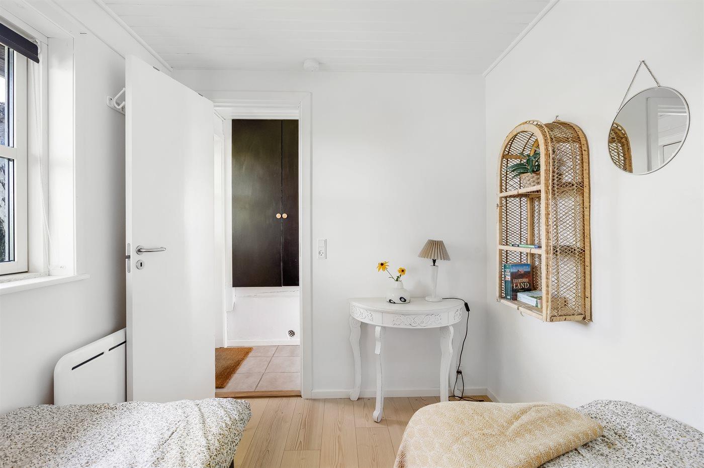 I råder over fire soveværelser, som fordeler sig med to i stueplan og to på første sal. På førstesalen er værelserne adskilt med forhæng, hvilket skaber fleksibilitet og et uformelt, hyggeligt præg. Sommerhuset er indrettet med et lyst og åbent køkken-alrum med god plads til fælles måltider og indendørs hygge.
