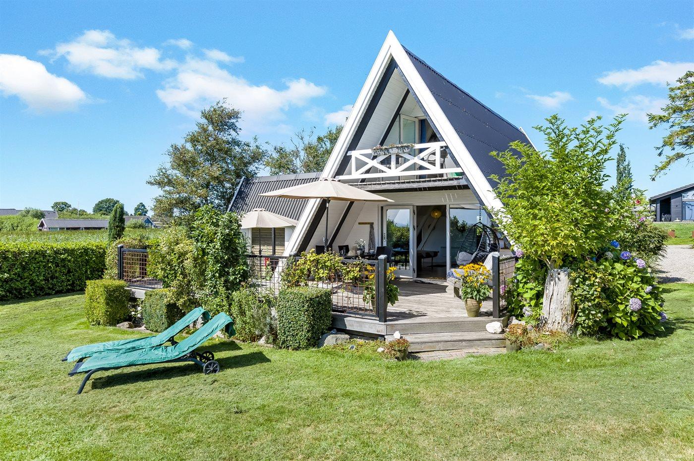 Hyggeligt sommerhus i Flovt med havudsigt og direkte adgang til strand og spa.