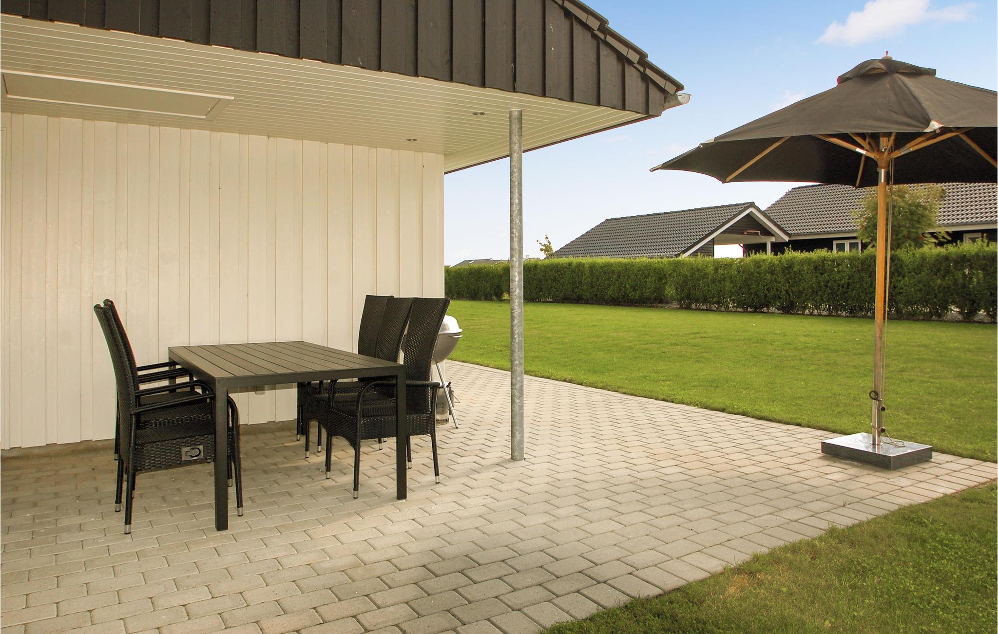 Tæt ved en af østkystens bedste badestrande ligger dette skønne moderne feriehus fra 2015. Det ligger på en aflukket grund hvor småbørn ikke kan løbe ud af haven. Der er to skønne overdækkede terrasser, en i hver ende af huset, så både morgen- og aftensol kan nydes fra det tidlige forår til de sene efterår. På begge terrasser er der bekvemme havemøbler og solvogne til afslapning. Det store køkken er åbent mod stuen er familiens samlingspunkt, og forvandler selv regnvejrsdag til en rigtig god feriedag. De store vinduer i køkken og stue giver et skønt lysindfald. Feriehuset er bygget i kvalitetsmaterialer, der er behagelig gulvarme i alle rummene og huset er meget energivenligt, b.la. er der jordvarme, der holder forbrugsomkostningerne nede. I nærheden af huset er der en stor åben plads hvor I bl.a. kan spille bold. Soverummene er velindrettede med rigtig gode senge og fra det største soveværelse er der direkte adgang til et af husets to skønne badeværelser, begge med brusebad. Holder I ferie ved Flovt kan I opleve et landskab med grønne marker og dale og skove og fjorde, der munder ud i Lillebælt. Et rigtigt familievenligt område med en børnevenlige strande ud til roligt vand. Den nærliggende by Haderslev har en charmerende gammel bydel, der er domineret af den imponerende domkirke. I kan f.eks. gå en tur gennem Haderslev dampark ved byens centrum og til de unge og aktive voksne er der Streetdome Haderslev som er Danmarks største skaterpark. I Aabenraa, en anden af Sønderjyllands hyggelige byer, er der mange spændende butikker på den lange og kuperede gågade og til de der ikke vil købe ind er der mange særprægede husdøre. Kører I længere sydpå kan I beundre Gråsten Slot, som hver sommer er samlingssted for den kongelige familie.