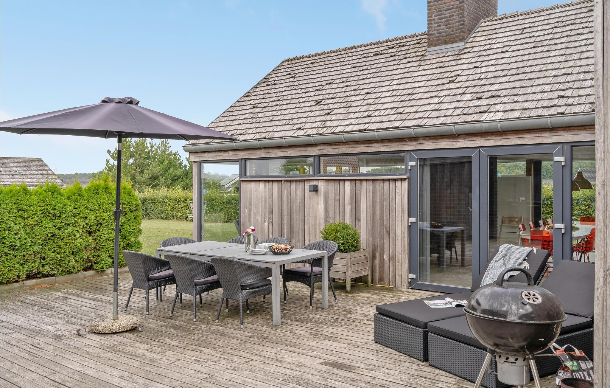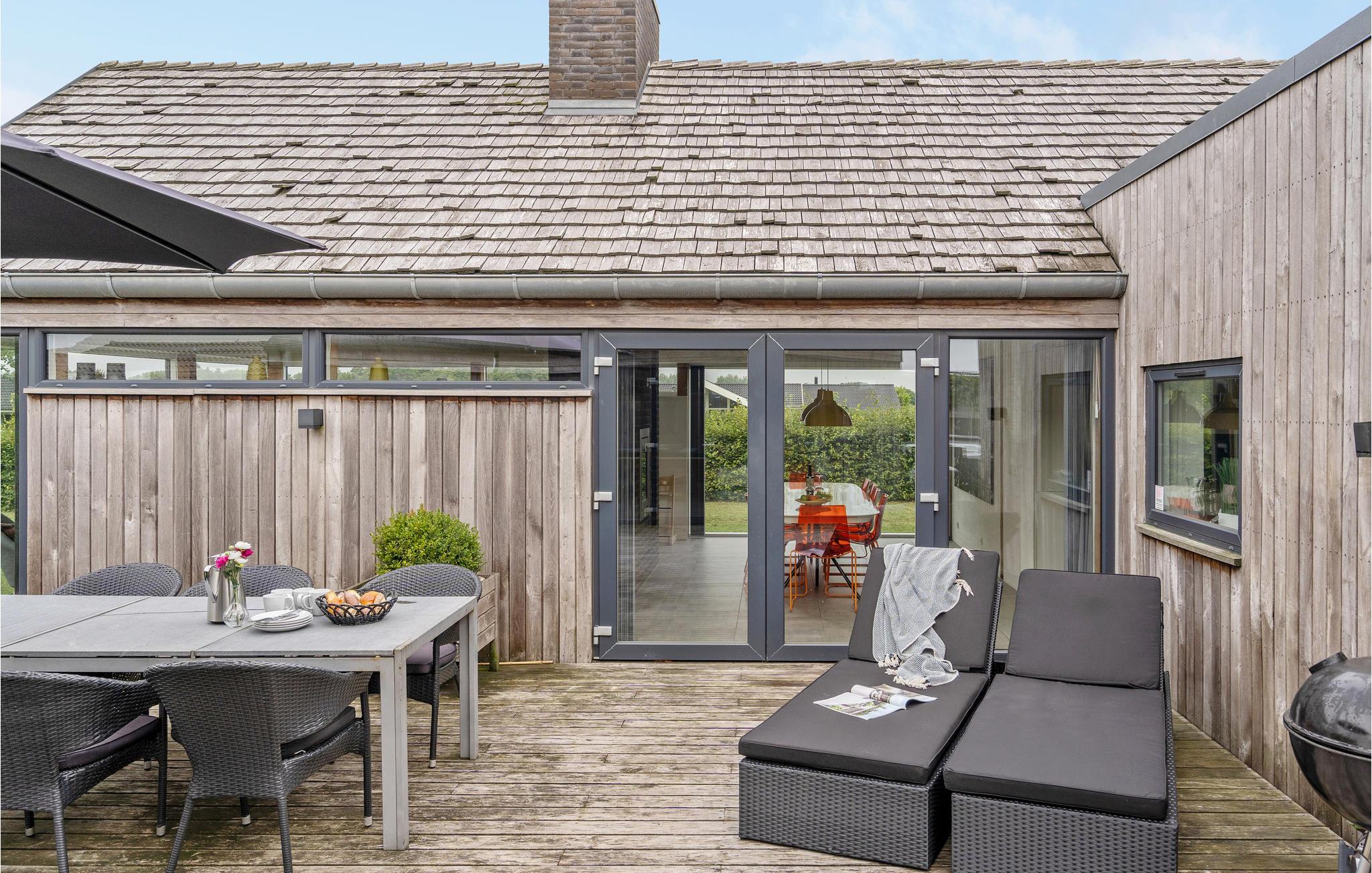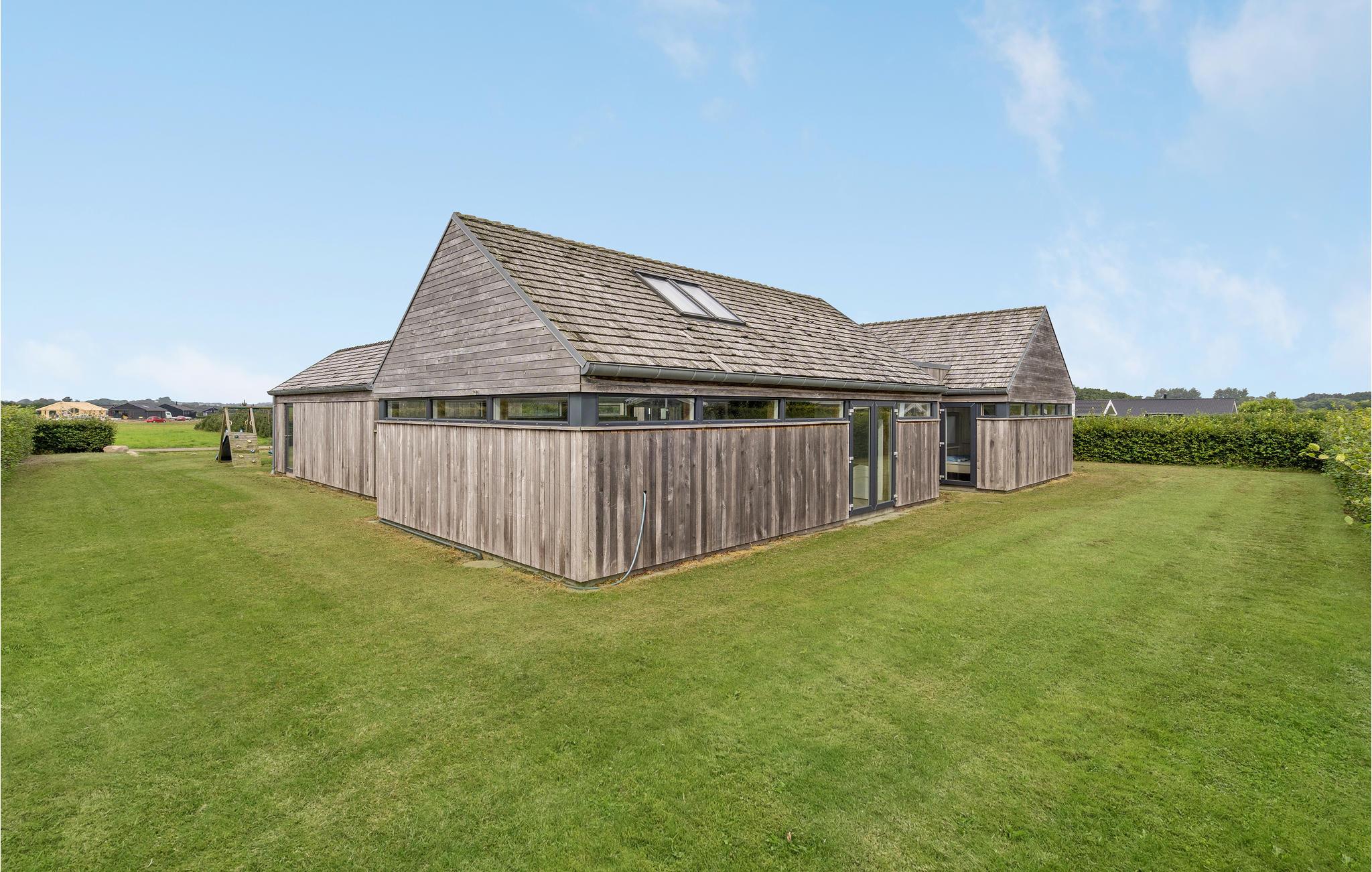 Moderne feriehus ved Flovt strand med pool, sauna, spa og aktivitetsrum for en aktiv og afslappende ferie.
