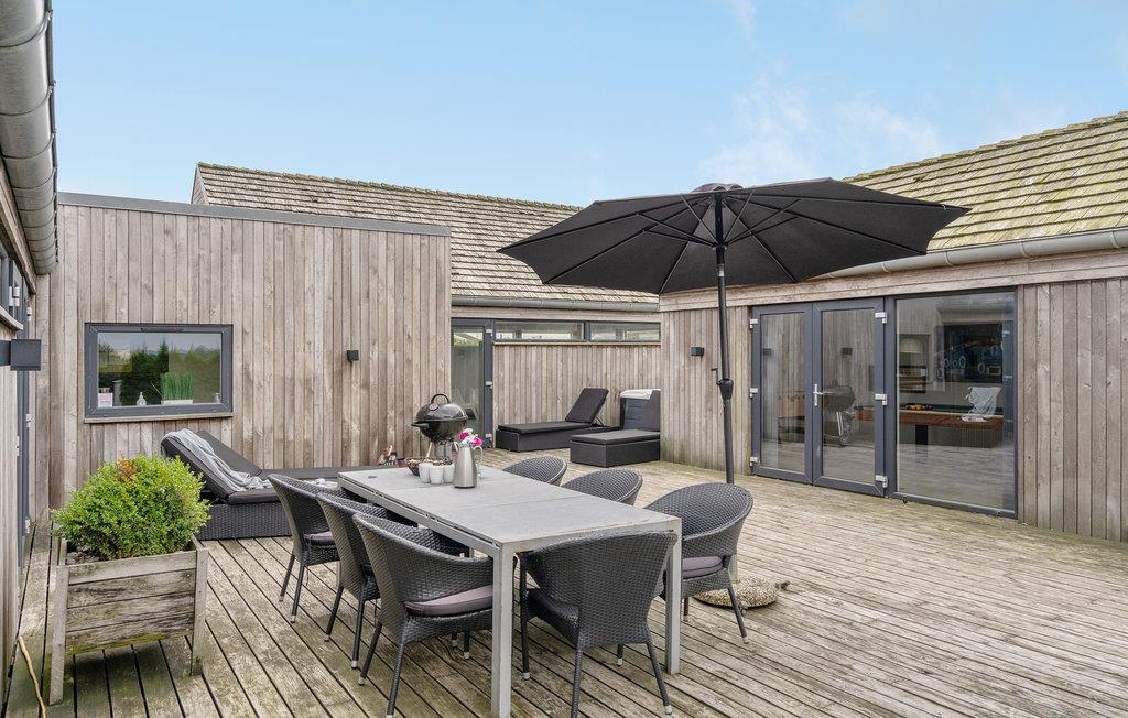 Dette pragtfulde feriehus fra 2012, ligger ved Flovt strand. Huset er smagfuldt og lyst indrettet, samt moderne møbleret. Dejligt køkken/alrum, gode soveværelser og flotte badeværelser. Her har I alt hvad hjertet kan begære, hvis I gerne vil have en aktiv ferie. Der er et stort indendørs pool område, hvor I kan tage jer en dukkert uanset vejret, slappe af i saunaen eller nyde boblernes massage i spaen. Huset har separat aktivitets område, med både bordfodbold, poolbord og andre aktiviteter. Udendørs er der legeredskaber til børnene samt et ude spa. I kan også slappe af på de dejlige terrasser. Huset ligger tæt ved områdets absolut bedste badestrand. Huset er et godt udgangspunkt for udflugter til f.eks. Oplevelsesparken Universe i syd, til Legoland mod nord. I området er der mange nye huse på vej, og der vil på nogle af grundene være igangværende arbejde.