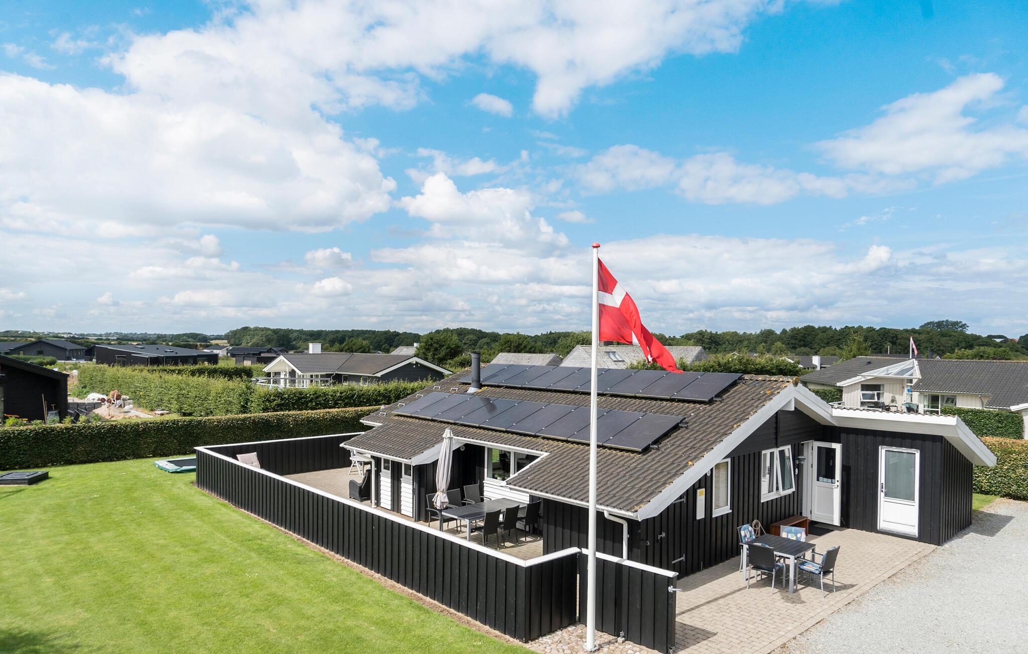Skønt sommerhus tæt ved Flovt Strand med sauna, spabad og stor terrasse til afslapning.