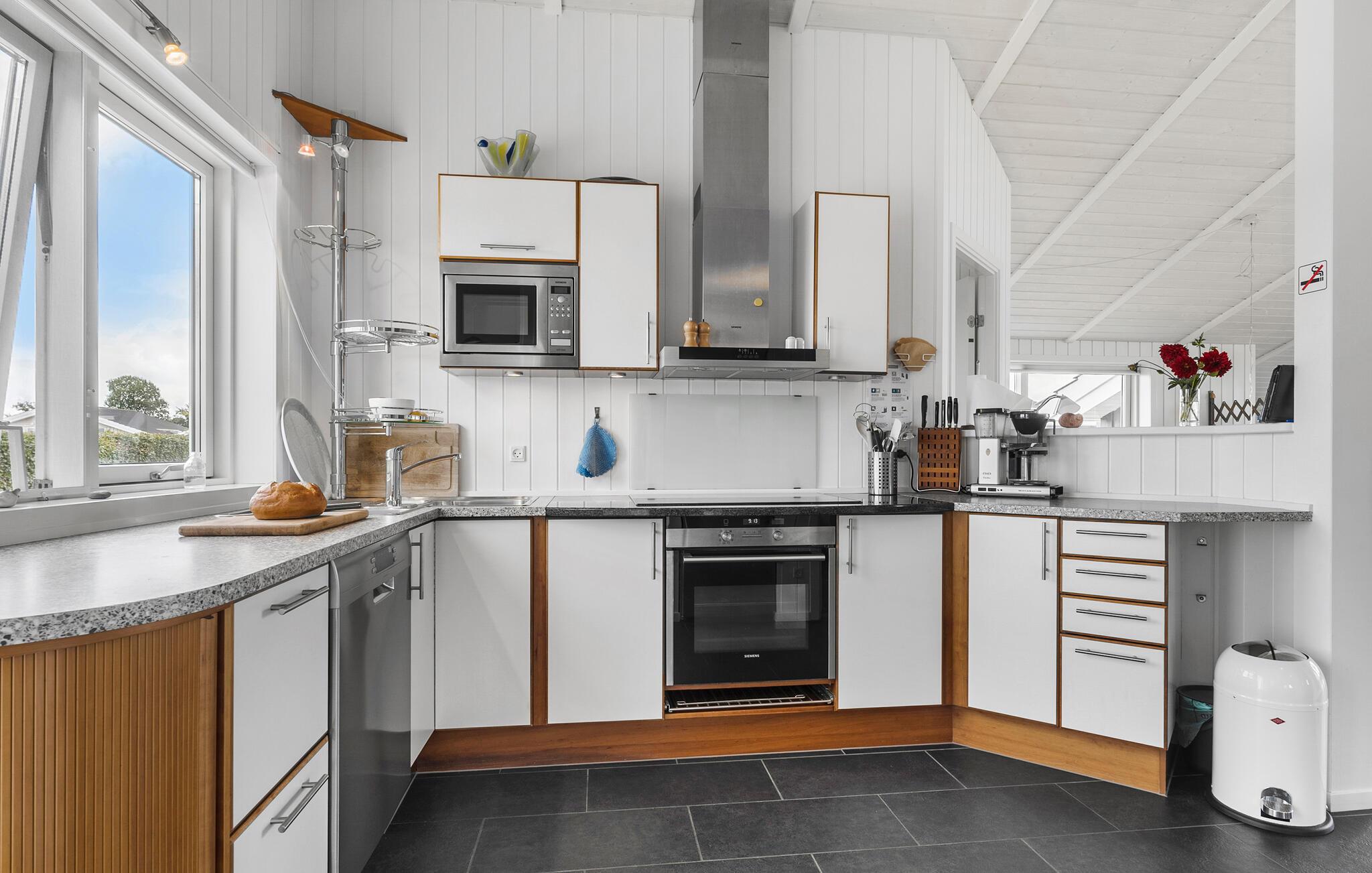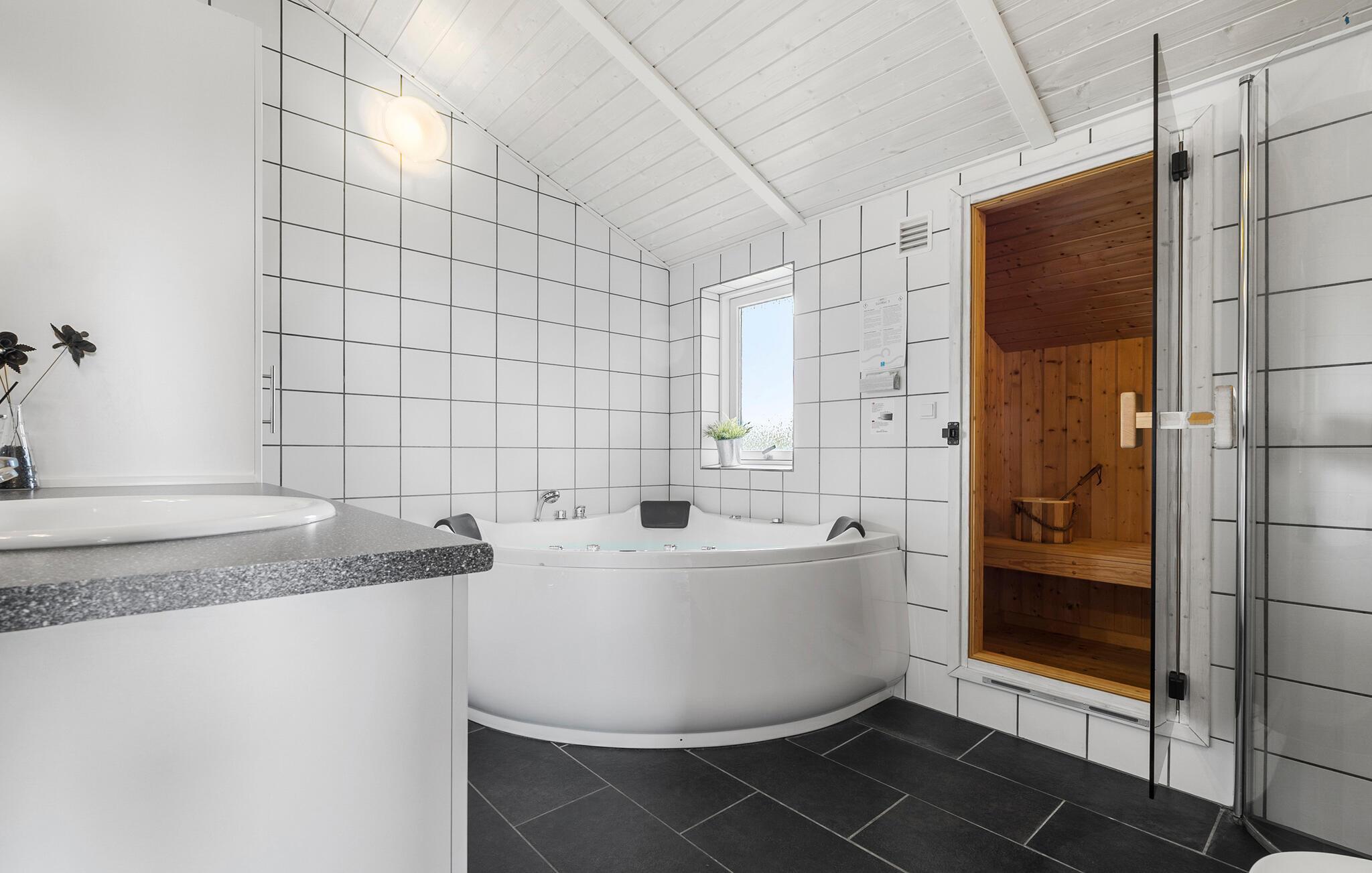 Dette skønne sommerhus er et dejligt helle, hvis I drømmer om at sætte hverdagen på pause. Her kan I tilberede lækre måltider i det veludstyrede køkken og nyde dem udendørs, når vejret er godt. Den store terrasse lægger op til en masse skønne timer under åben himmel. I huset er der sauna og spabad, så vil I gøre noget ekstra godt for jer selv oven på dagens strabadser, er det en herlig måde at sætte punktum for dagen. Til børnene er der både gynger og sandkasse i haven.