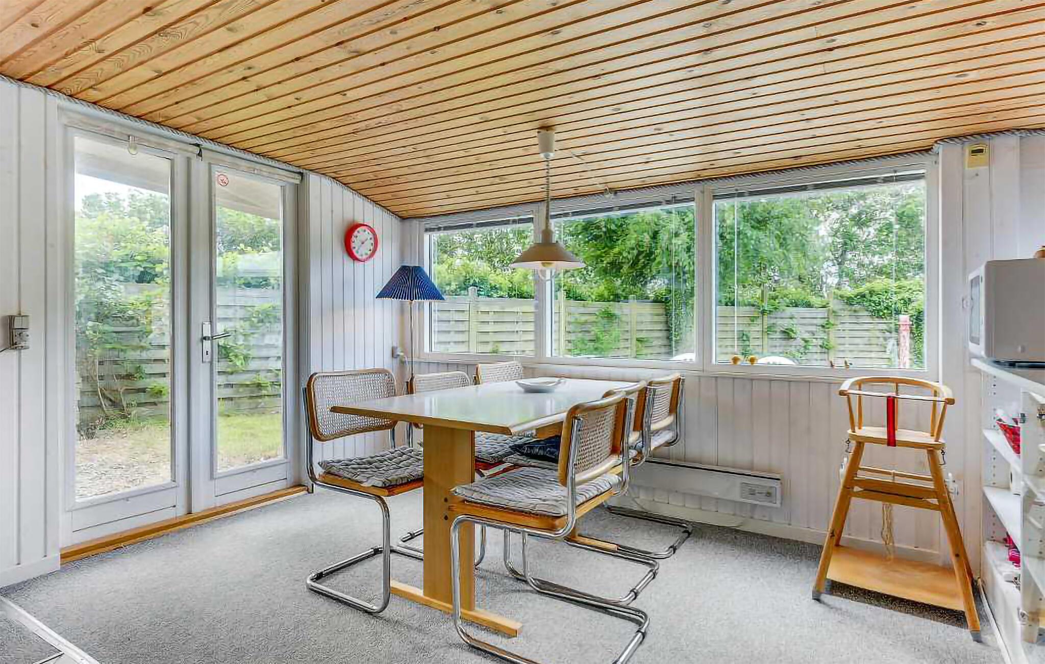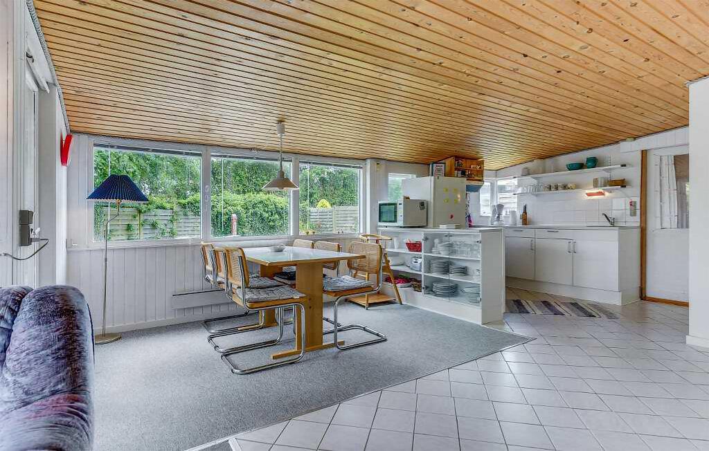 Nyd en pause fra hverdagen i jeres feriehus, der giver jer mulighed for at tilbringe afslappende dage nær stranden. Tilbered lækre retter i det åbne køkken og dæk det tilstødende spisebord til et dejligt måltider med udsigt til den grønne have. Om aftenen kan I læne jer godt tilbage i sofaen.