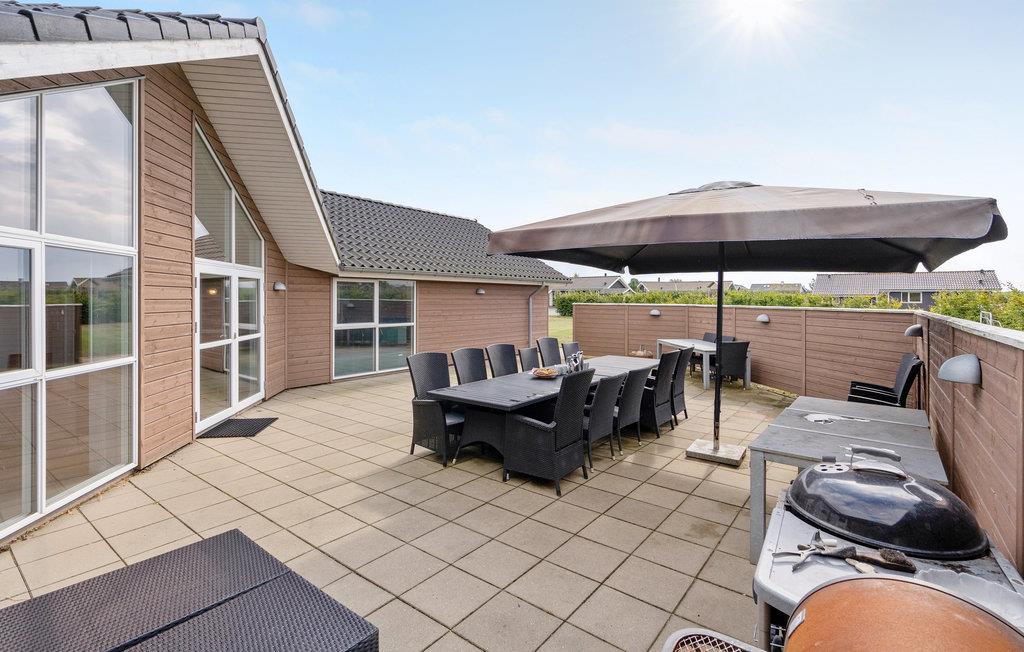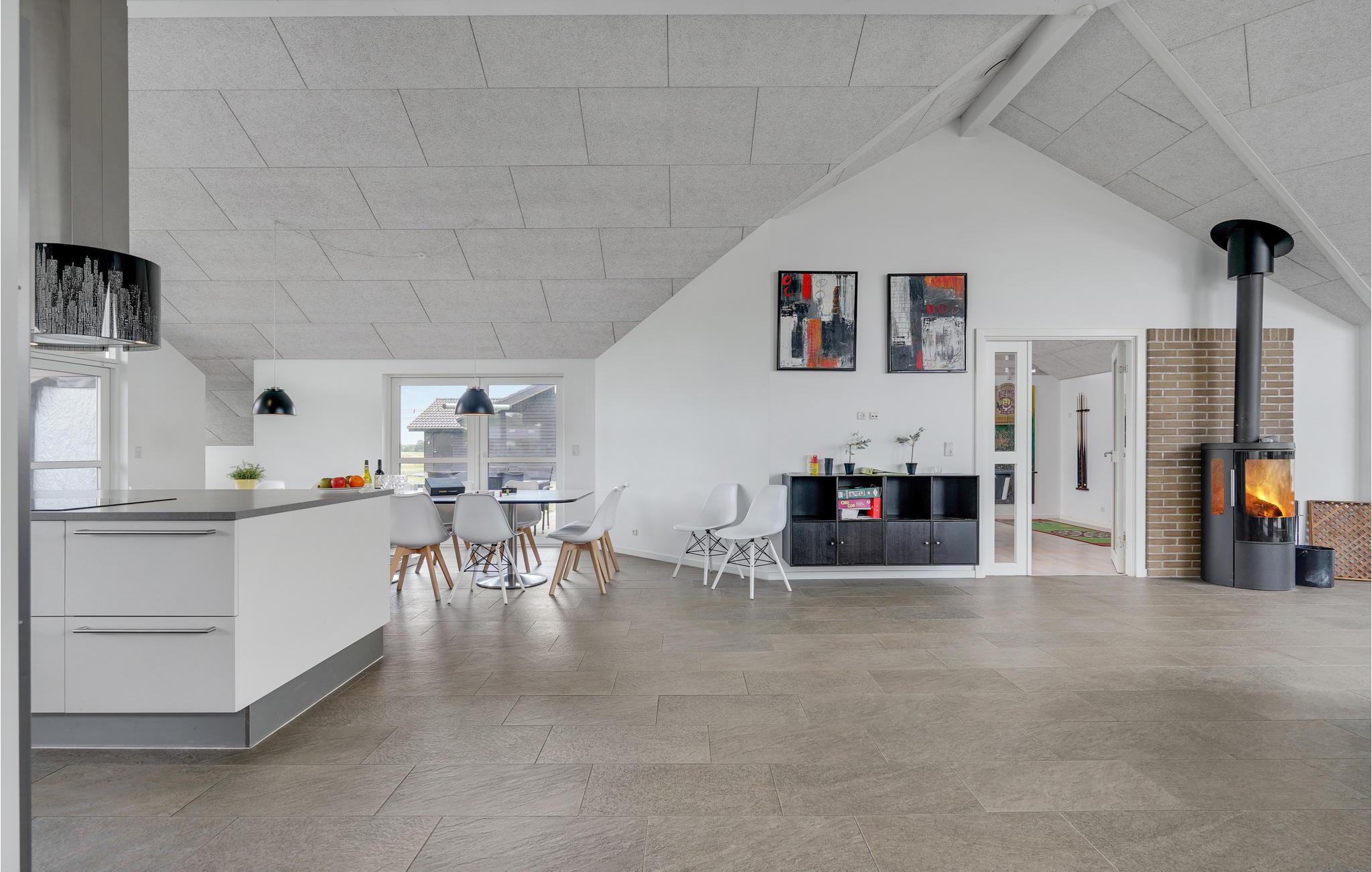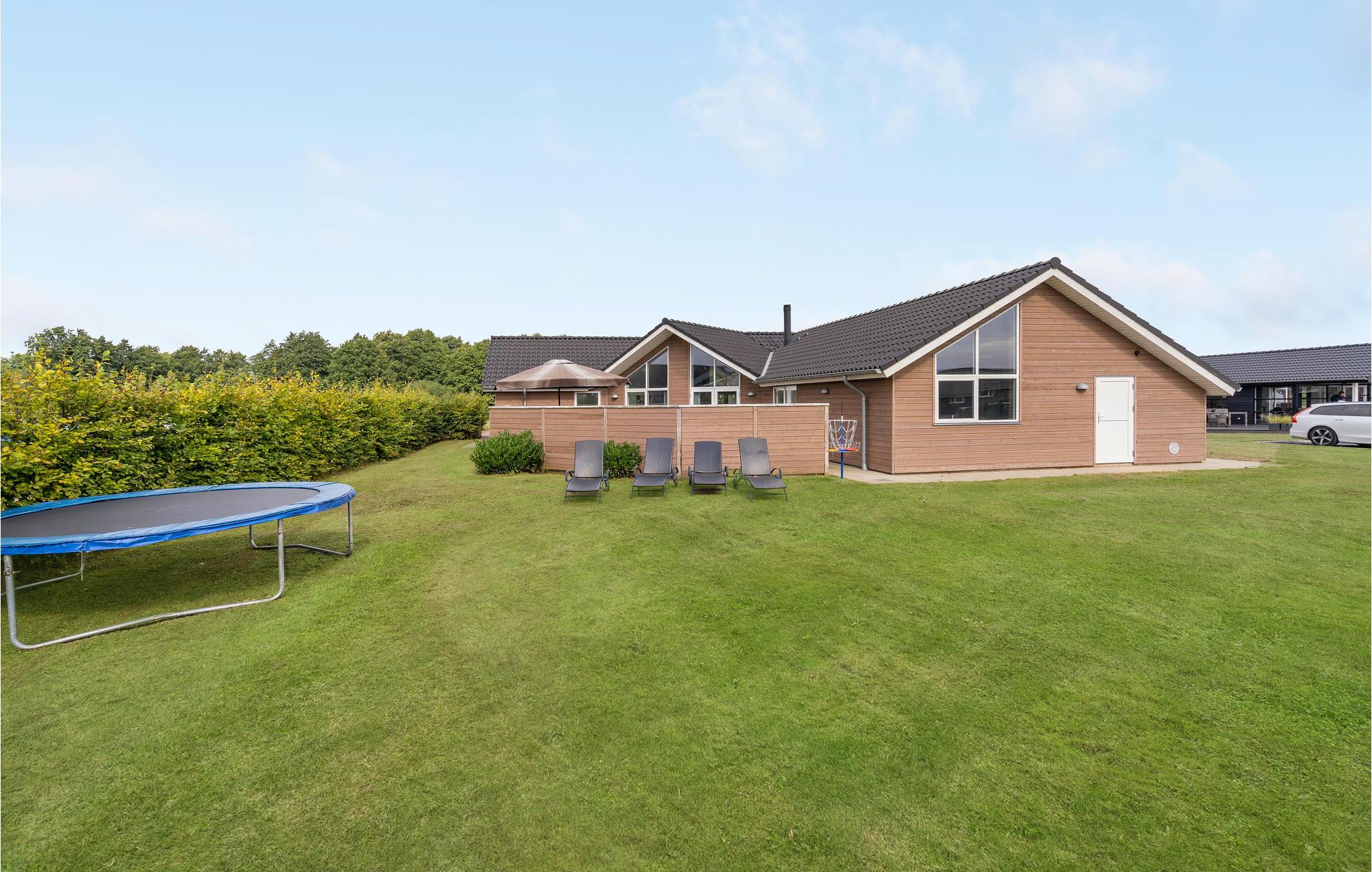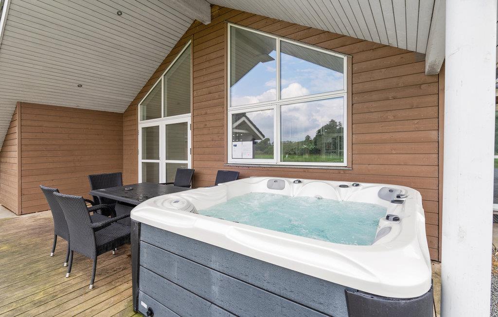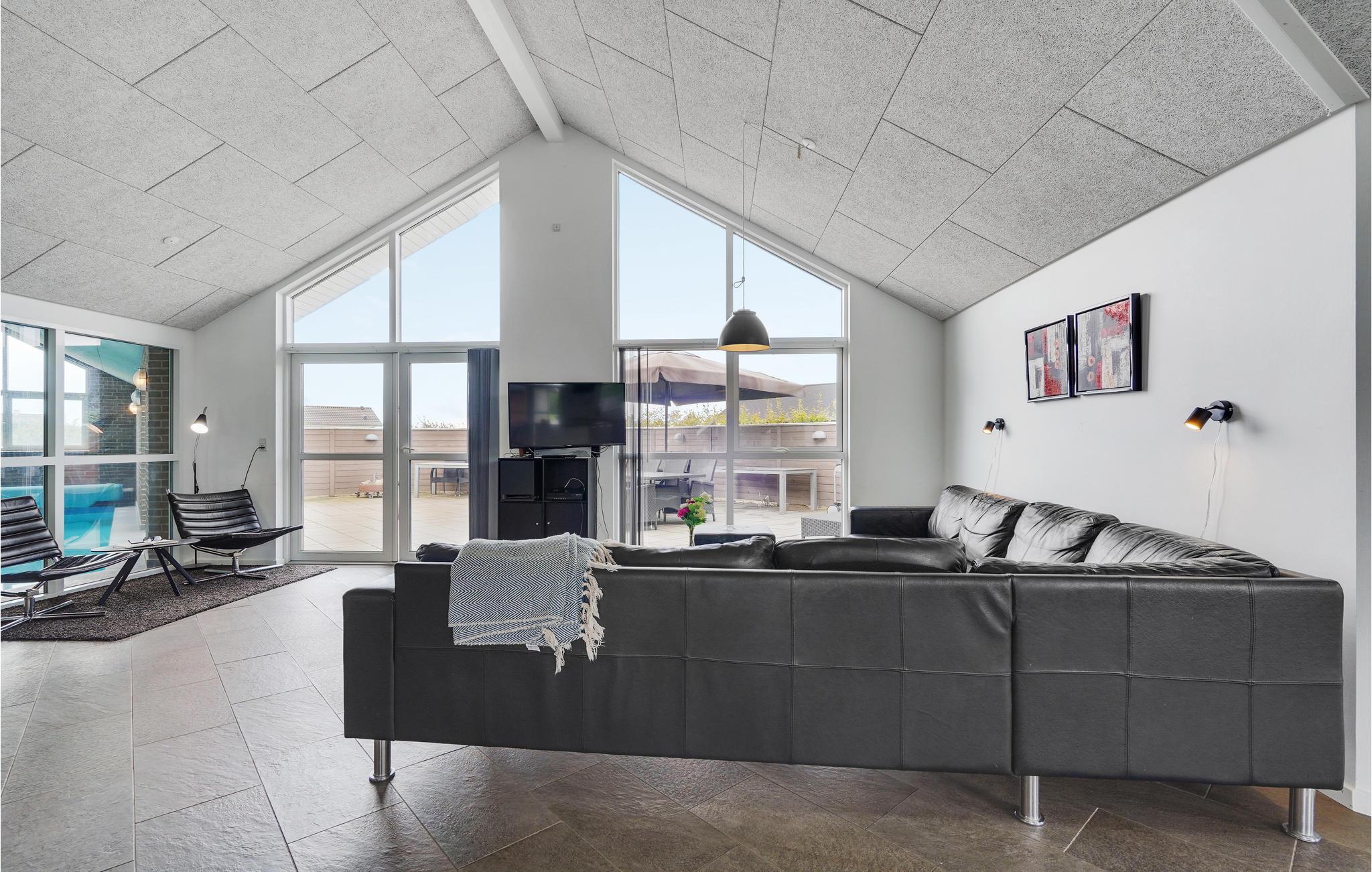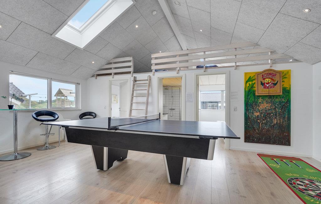 Dette moderne feriehus ved Flovt Strand byder på swimmingpool, spabad og aktivitetsrum for en aktiv familieferie.