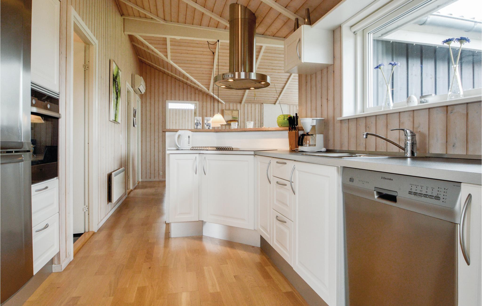 Et dejligt feriehus med en beliggenhed i rolige omgivelser. Huset er helt igennem moderne indrettet med en skøn, lys stue med loft til kip. Stuen og køkkenet ligger i åben forbindelse, hvilket er med til at gøre hele familiens ferie komfortabel. Her findes tre gode soveværelser og i badeværelset kan I nyde boblerne i spabadet. Stranden, der kun er en kort spadseretur væk fra huset, er meget børnevenlig og selv i højsommeren er der mulighed for at finde jeres egen helt private plet. Nyd også husets dejlige terrasse med gode havemøbler samt den skønne have. Har I lyst til udflugter er der mange muligheder for aktiviteter; der kan surfes ved stranden, der er mulighed for lystfiskeri både i havet men også ved fiskesøen der ligger ca. seks km fra huset. Er det golf der har jeres interesse, ligger der flere baner i området, den nærmeste inden for 12 km. Haderslev, som er den større by i området, er en rigtig hyggelig by. Byen er en mere end 700 år gammel købstad, og det mærkes overalt med hyggelig stemning som I kun finder i ældre byer. Uanset hvor I ser hen, vil I opleve og se et stykke levende danmarkshistorie. Besøg også en af byens museer. Har I lyst til lidt længere udflugter er Legoland og Givskud Zoo ikke længere væk end halvanden times kørsel.