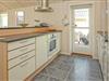 Velkommen til dette indbydende feriehus. Det veludstyrede køkken ligger i åben forbindelse med den pænt møblerede stue med brændeovn, således at feriekokken/kokkene kan holdes med selskab af de gæster, der slapper af i stuen. Badeværelset er udstyret med et spabad til to personer, hvor I virkelig kan slappe af efter en aktiv feriedag.