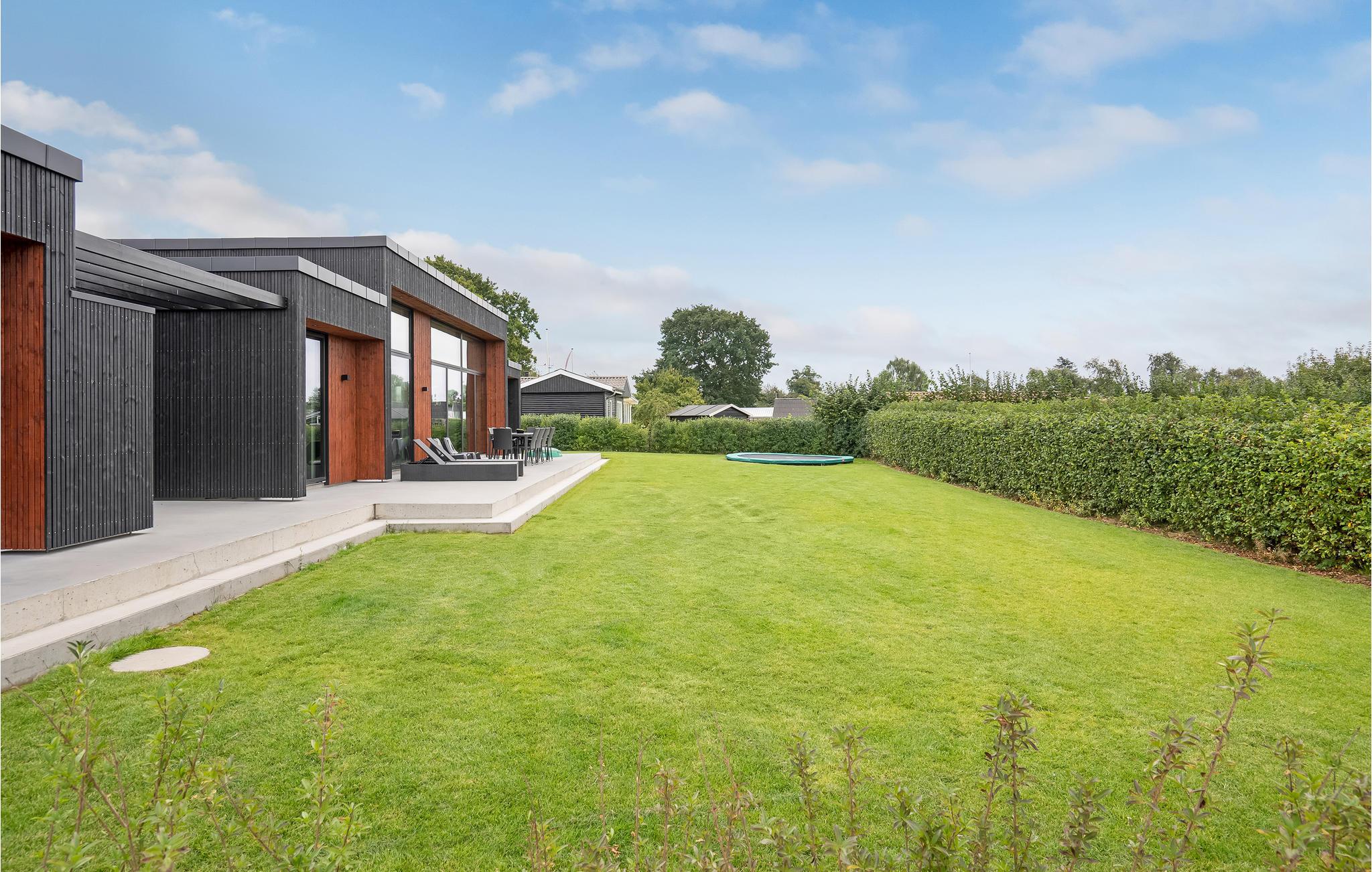 Luksushus med spa og terrasse nær Flovt Strand, ideelt til afslapning og naturoplevelser.