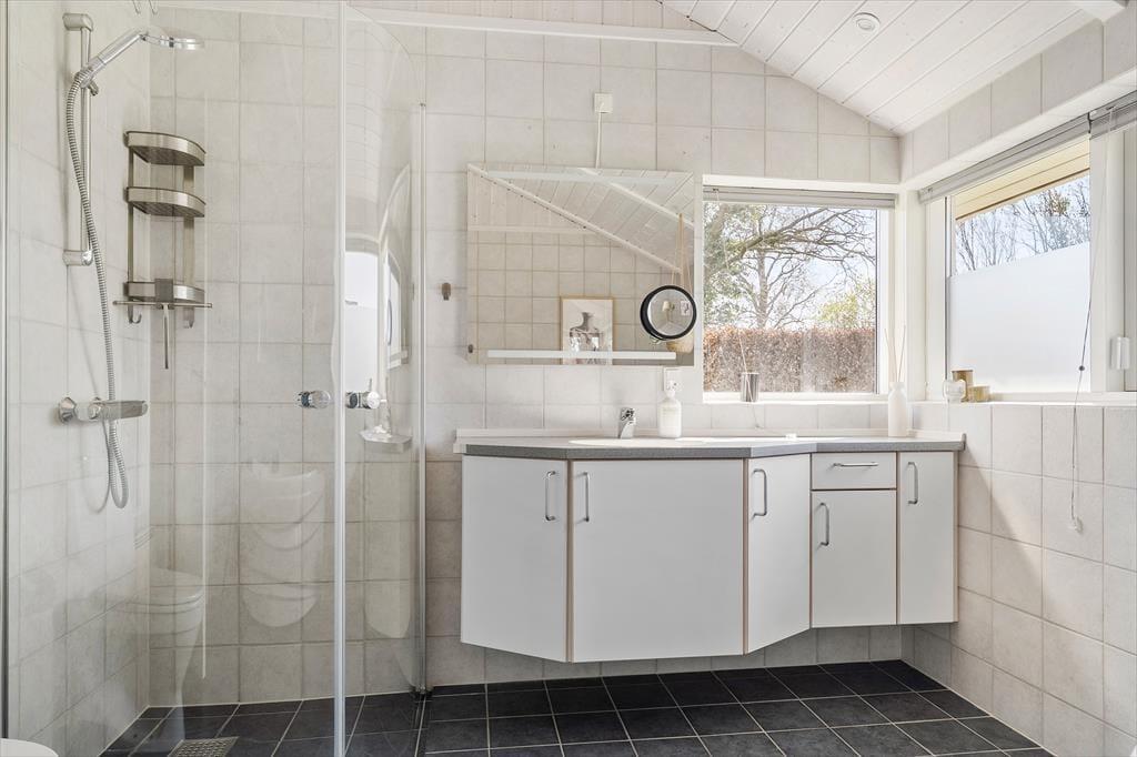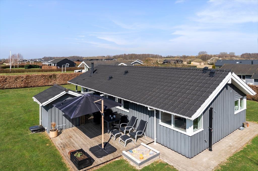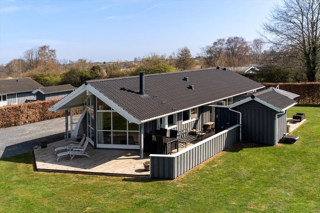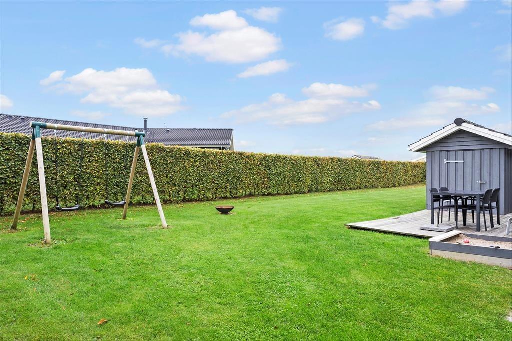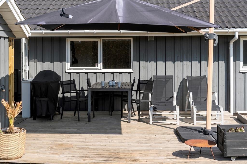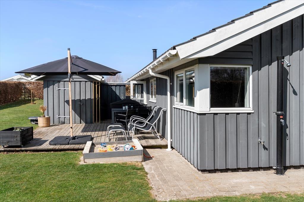 Det er udenfor, dette sommerhus virkelig folder sig ud som ferieoase. De store terrasser snor sig rundt om huset og gør det muligt at finde sol, læ og skygge – hele dagen. Start morgenen med kaffe og fuglekvidder på den østvendte terrasse, læn dig tilbage i liggestolen med en bog midt på dagen, og afslut med en god middag ved havebordet, mens aftensolen luner. Den lukkede have giver masser af plads til både leg og afslapning. Her kan børnene gynge og boltre sig i det fri, mens du tager et forfriskende udendørs brusebad i det lune sommervejr. Omgivelserne indbyder til ro og fordybelse, uanset om du er til aktivitet eller ren afslapning.